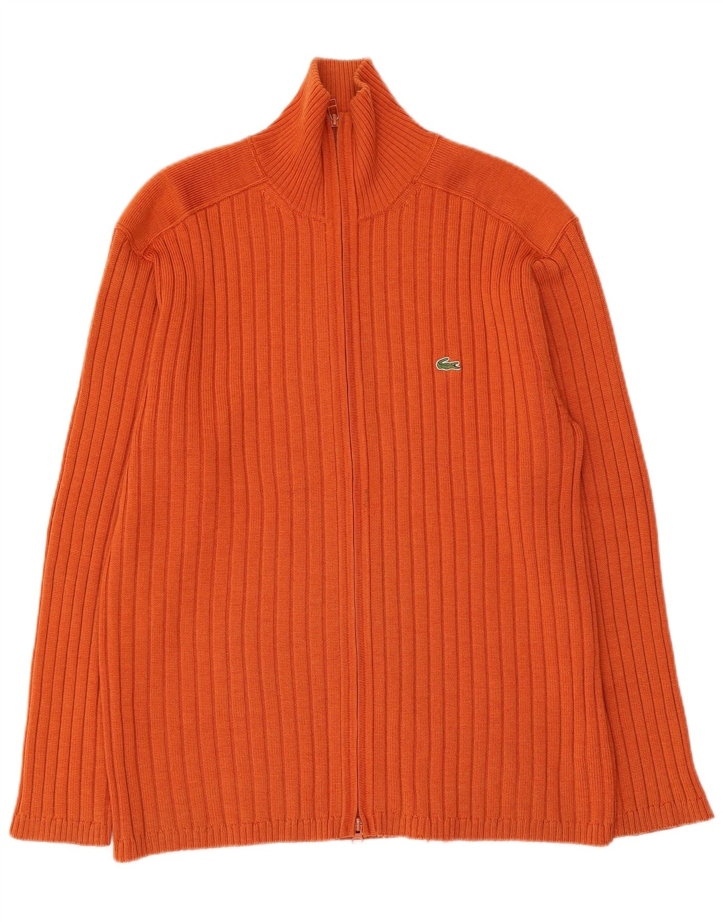 LACOSTE Homme Cardigan Pull Taille 7 2XL Orange Laine