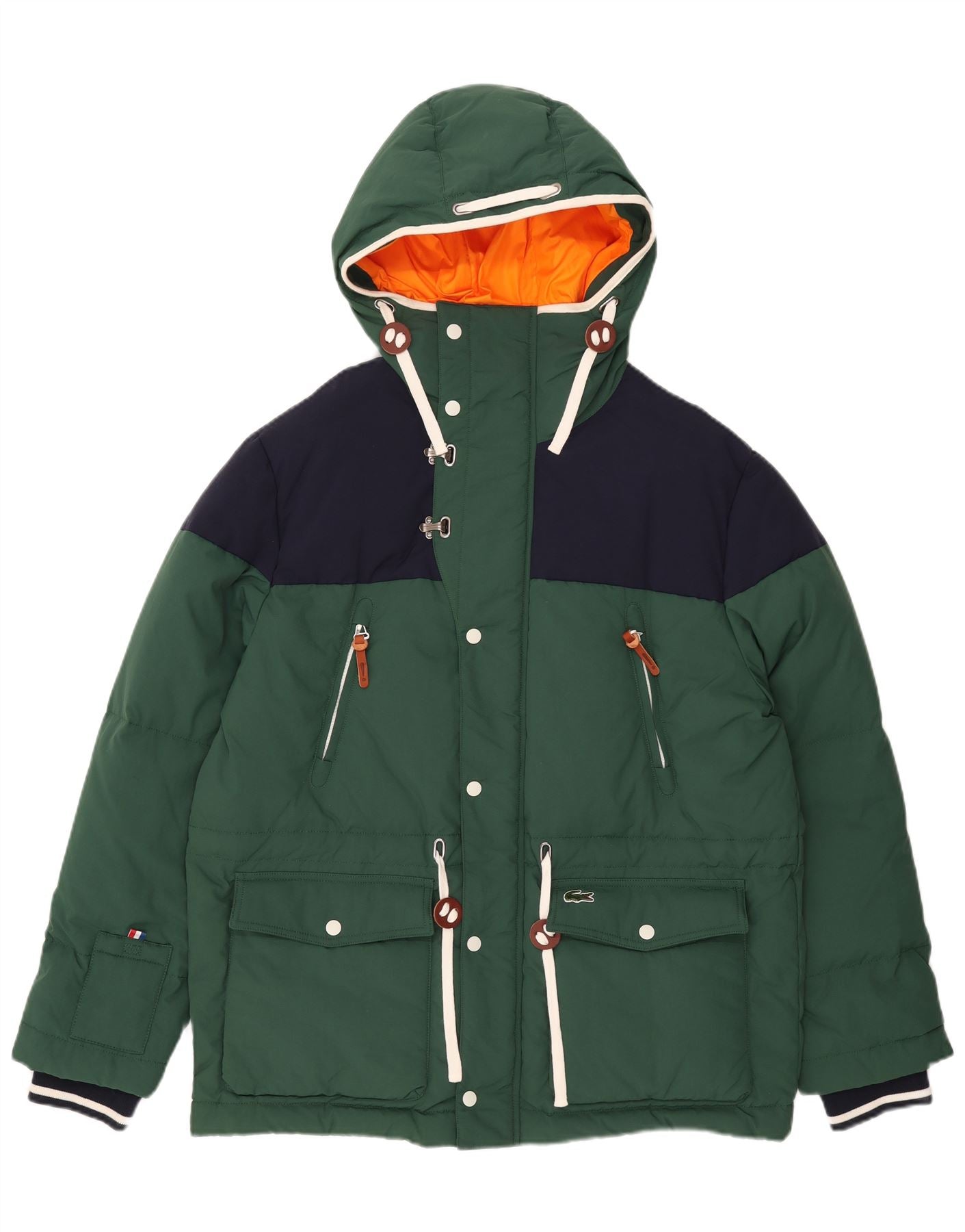 LACOSTE Veste matelassée à capuche pour homme IT 54 2XL Vert Colourblock Polyamide