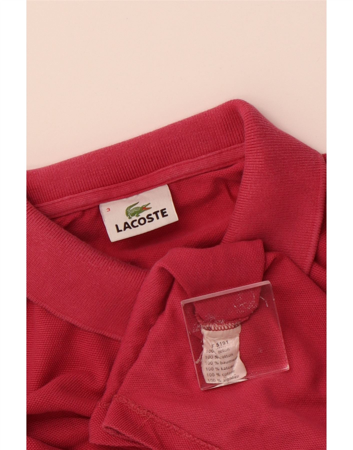 LACOSTE Polo à manches longues pour homme taille 3 petit coton rose