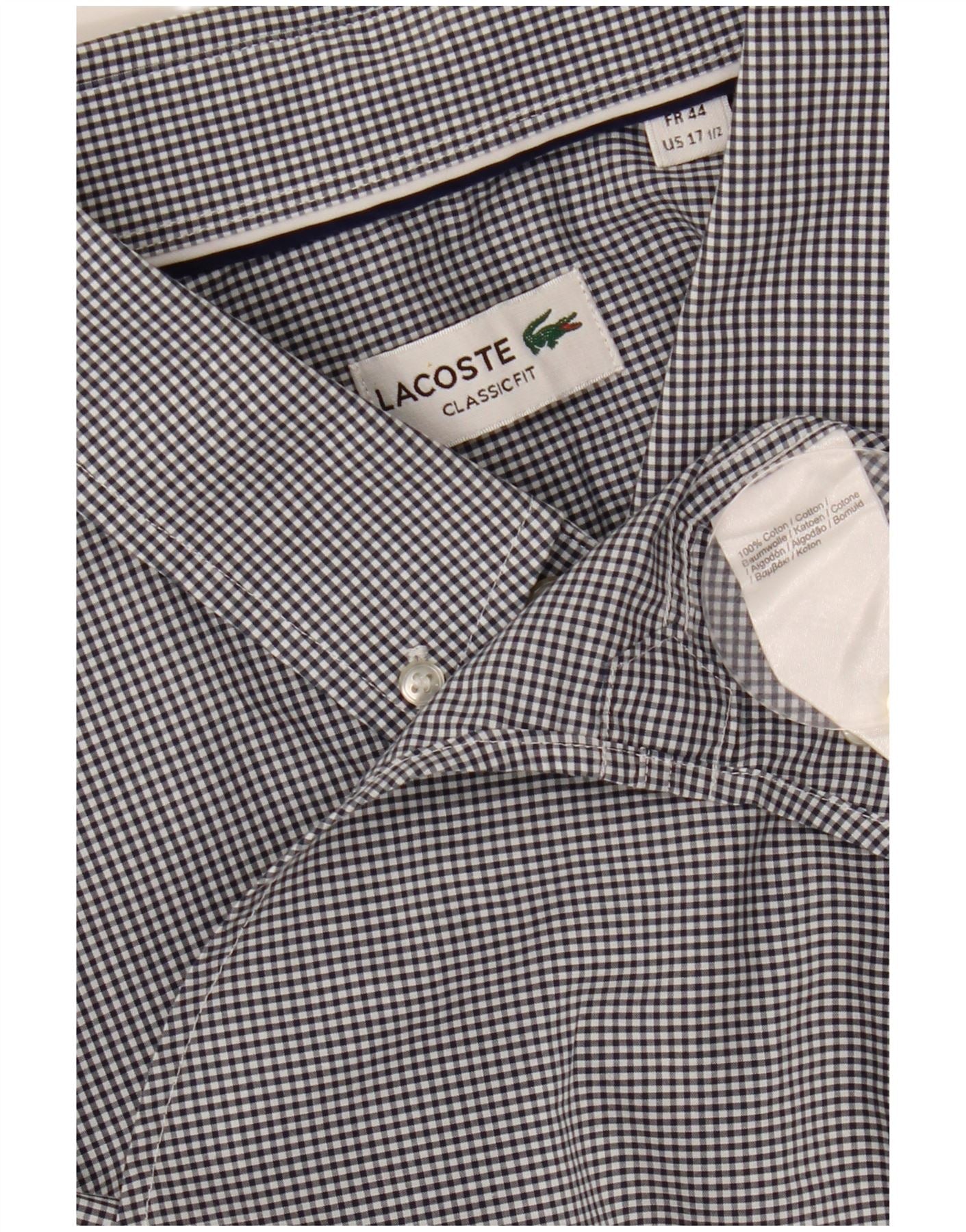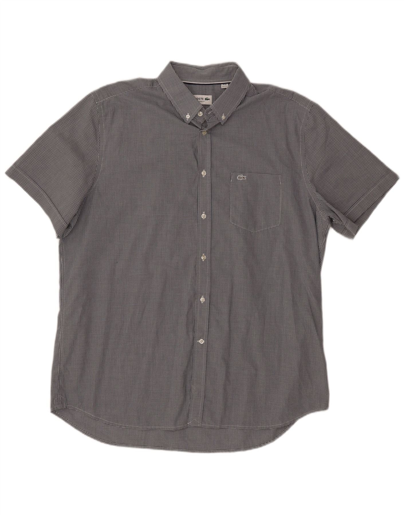 LACOSTE Chemise à manches courtes homme Taille 44 17 1/2 XL Vichy noir