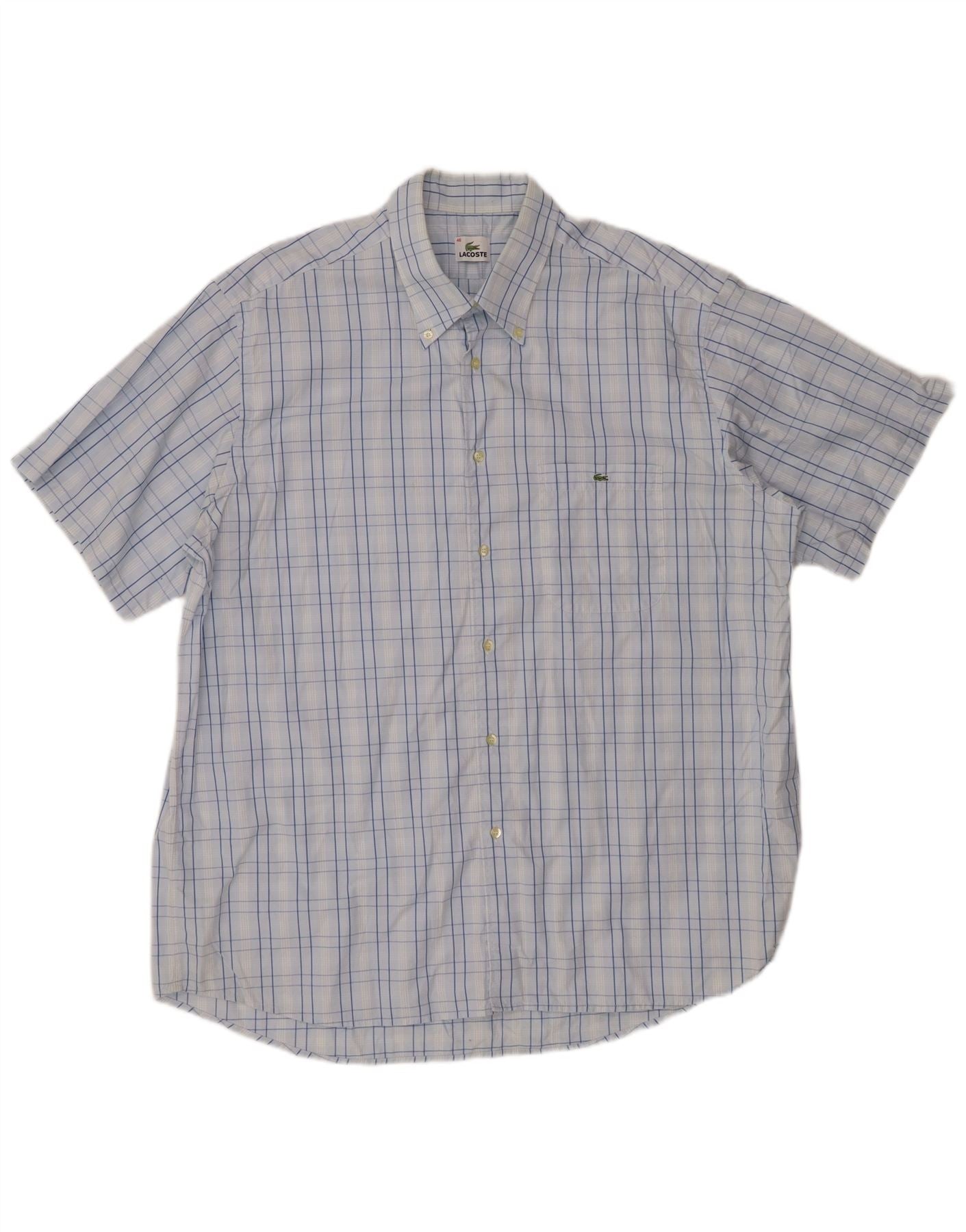 LACOSTE Chemise à manches courtes pour hommes Taille 46 2XL Coton à carreaux bleus