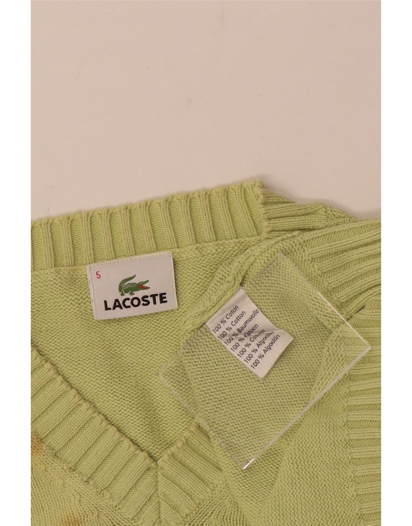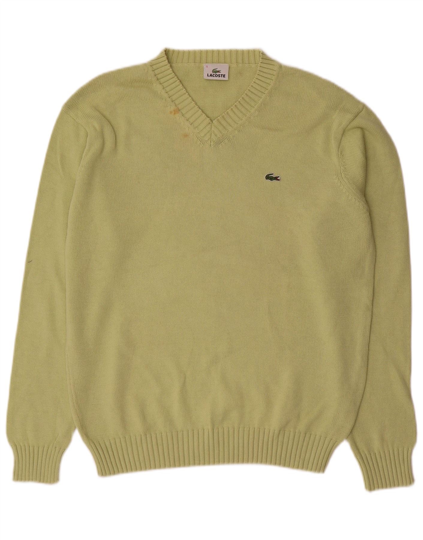 LACOSTE Homme Col V Pull Pull Taille 5 Grand Coton Vert