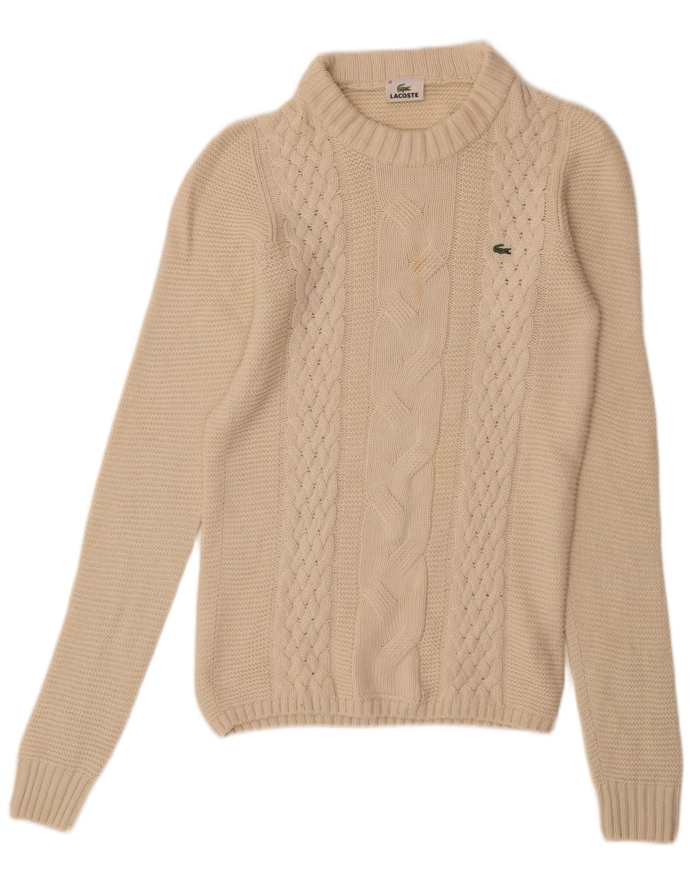 LACOSTE Femme Crew Neck Jumper Pull Taille 38 Laine Beige Moyen
