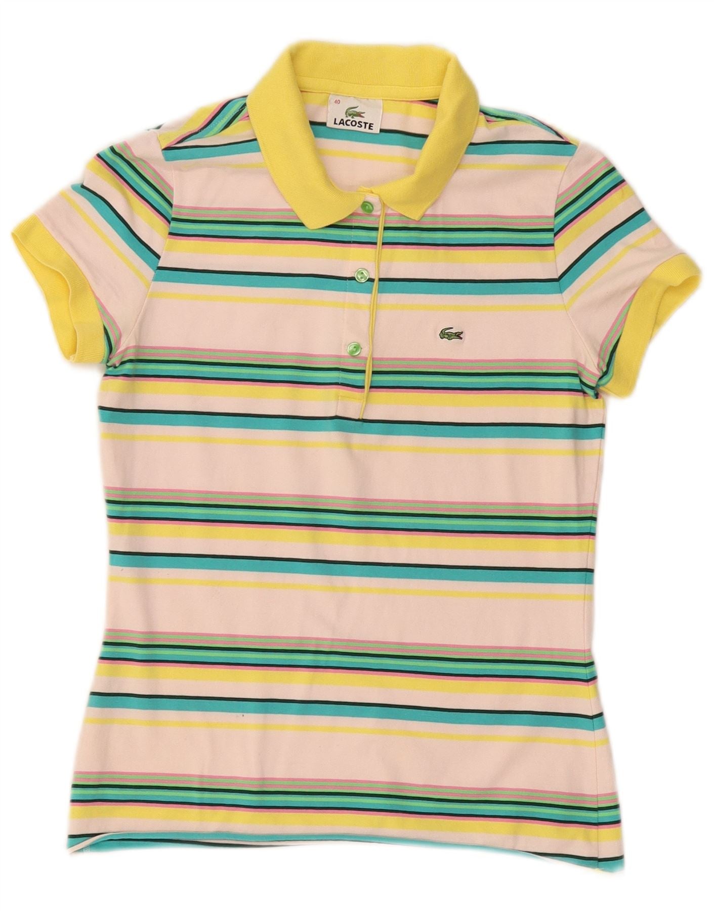 LACOSTE Polo Femme Taille 40 Moyen Coton Rayé Multicolore