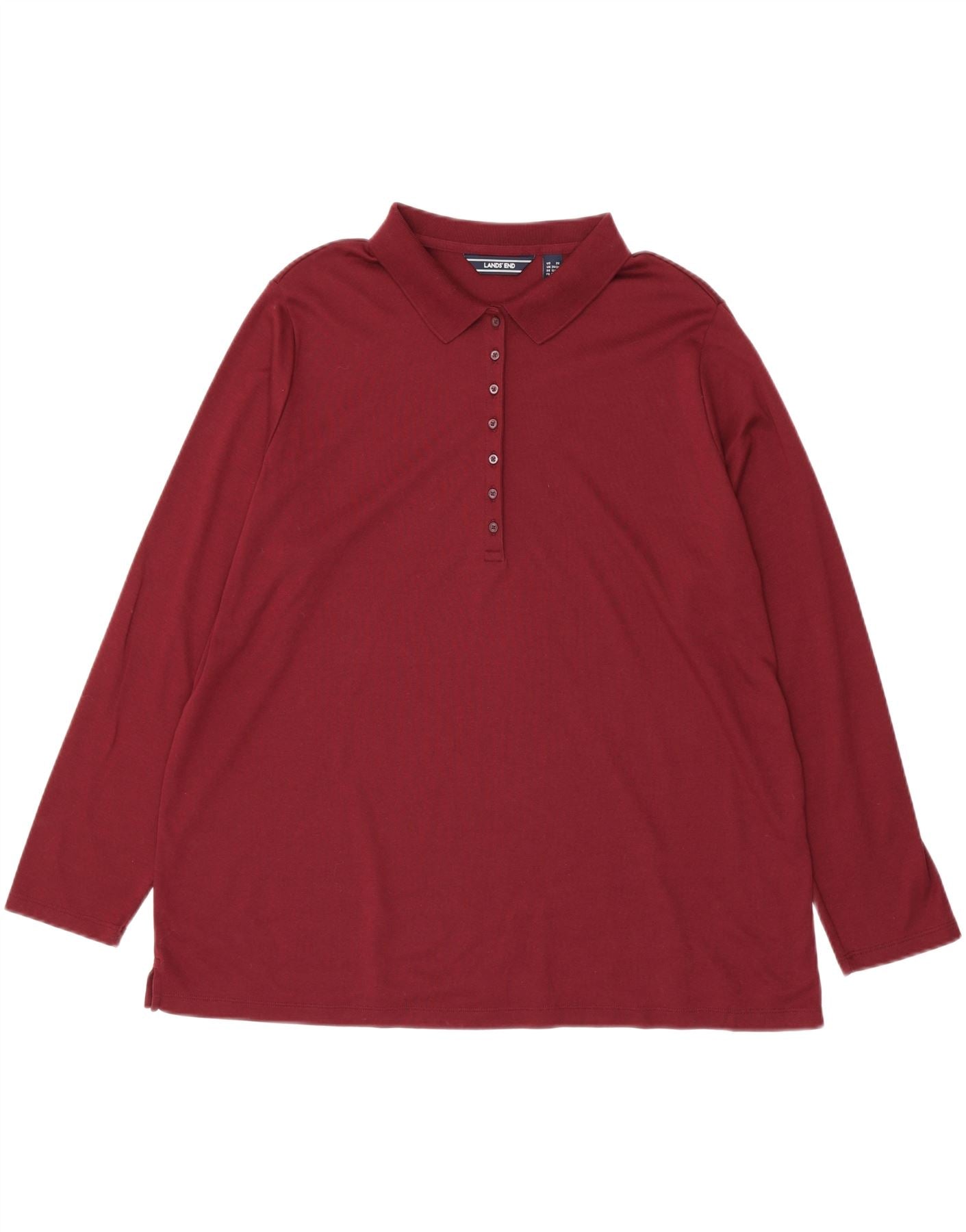 LANDS END Polo à manches longues pour femme UK 24/26 2XL Coton bordeaux