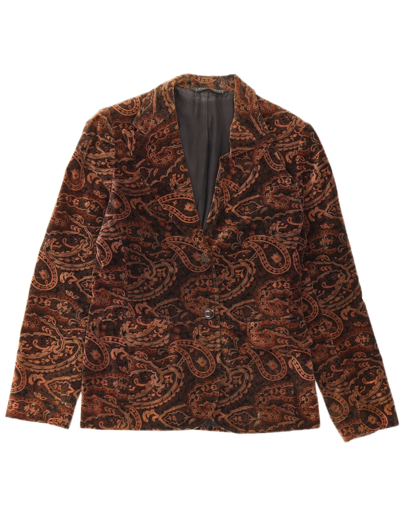 Laura Ashley Veste blazer en velours à 2 boutons pour femme UK 8 Petit motif cachemire marron