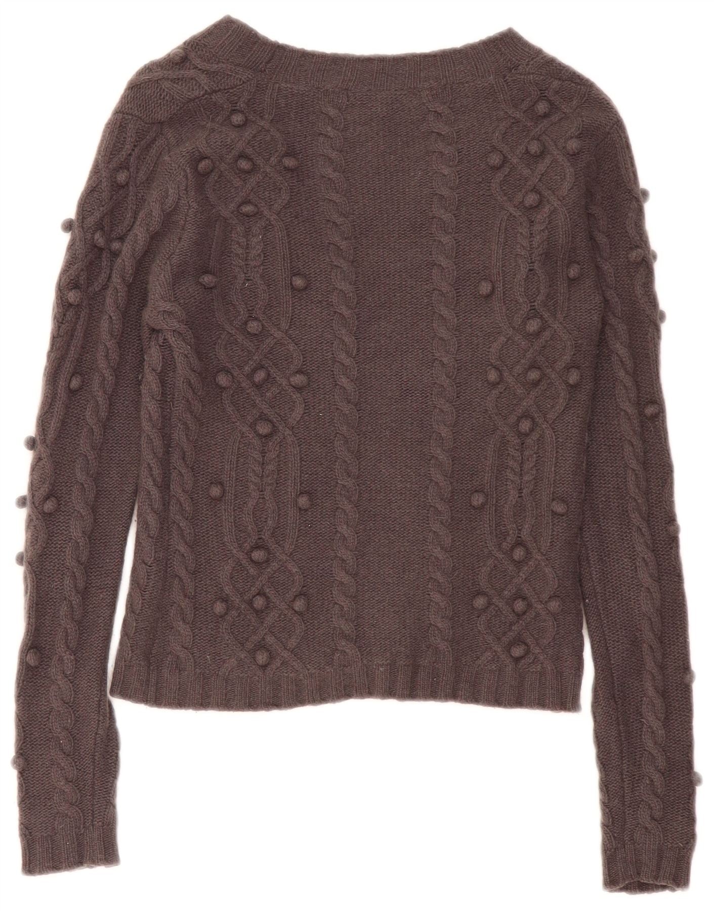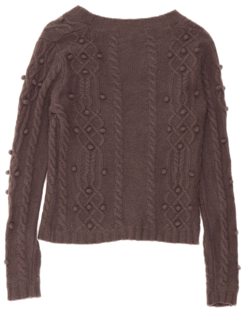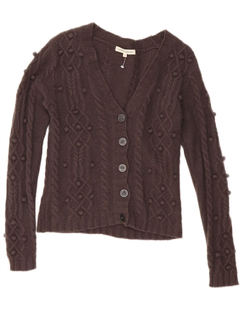 LAURA ASHLEY Womens Crop Cardigan Sweater UK 10 Small Brown Lambswool