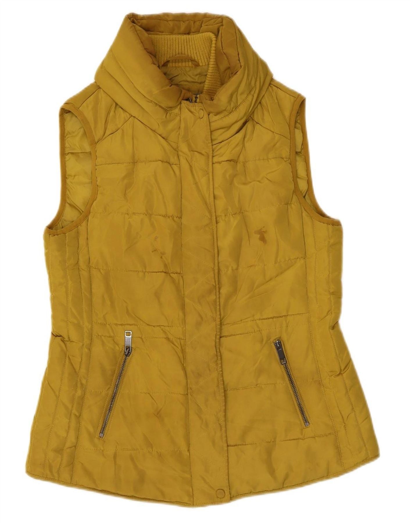 LAURA ASHLEY Womens Padded Gilet UK 12 Medium Yellow Polyester