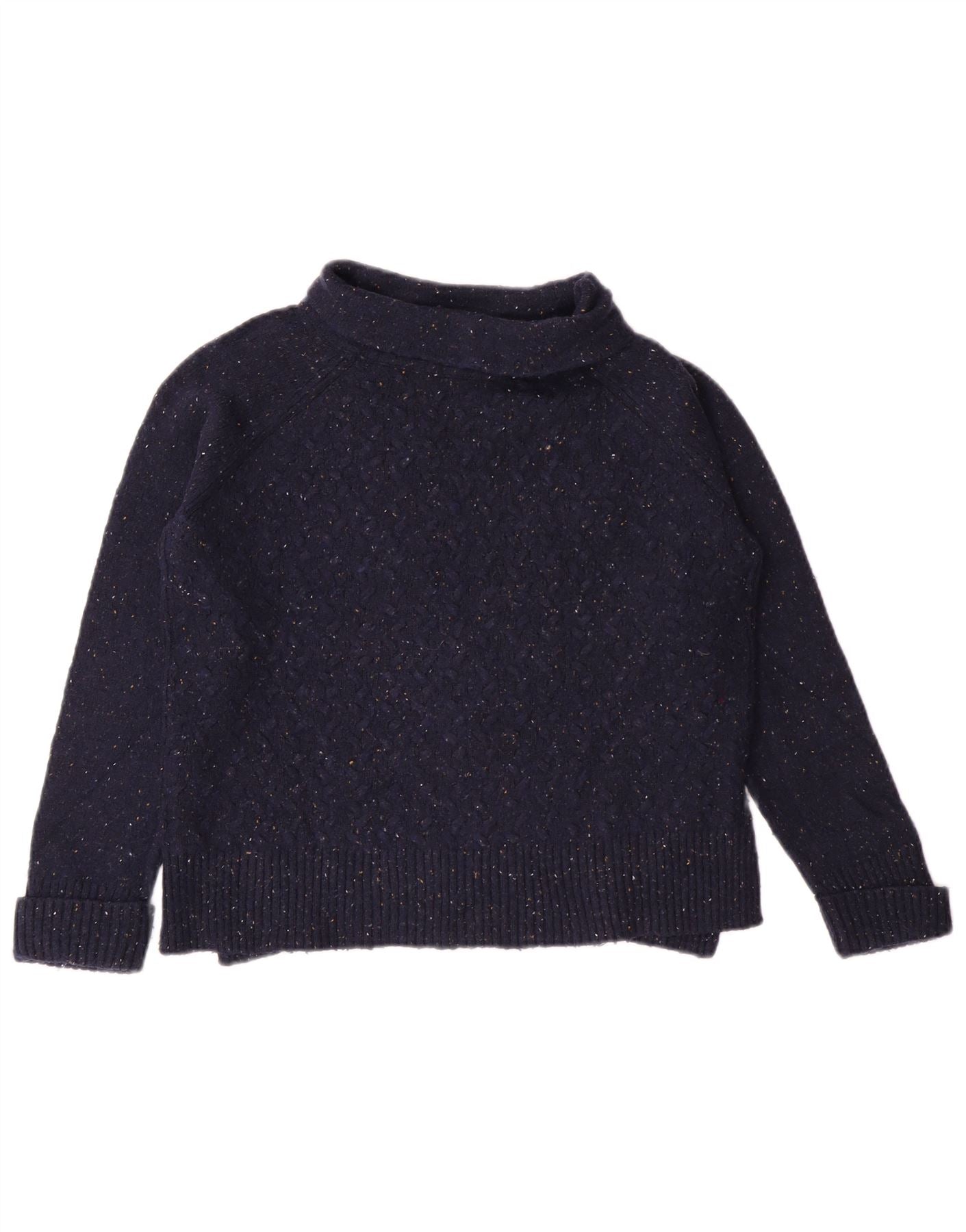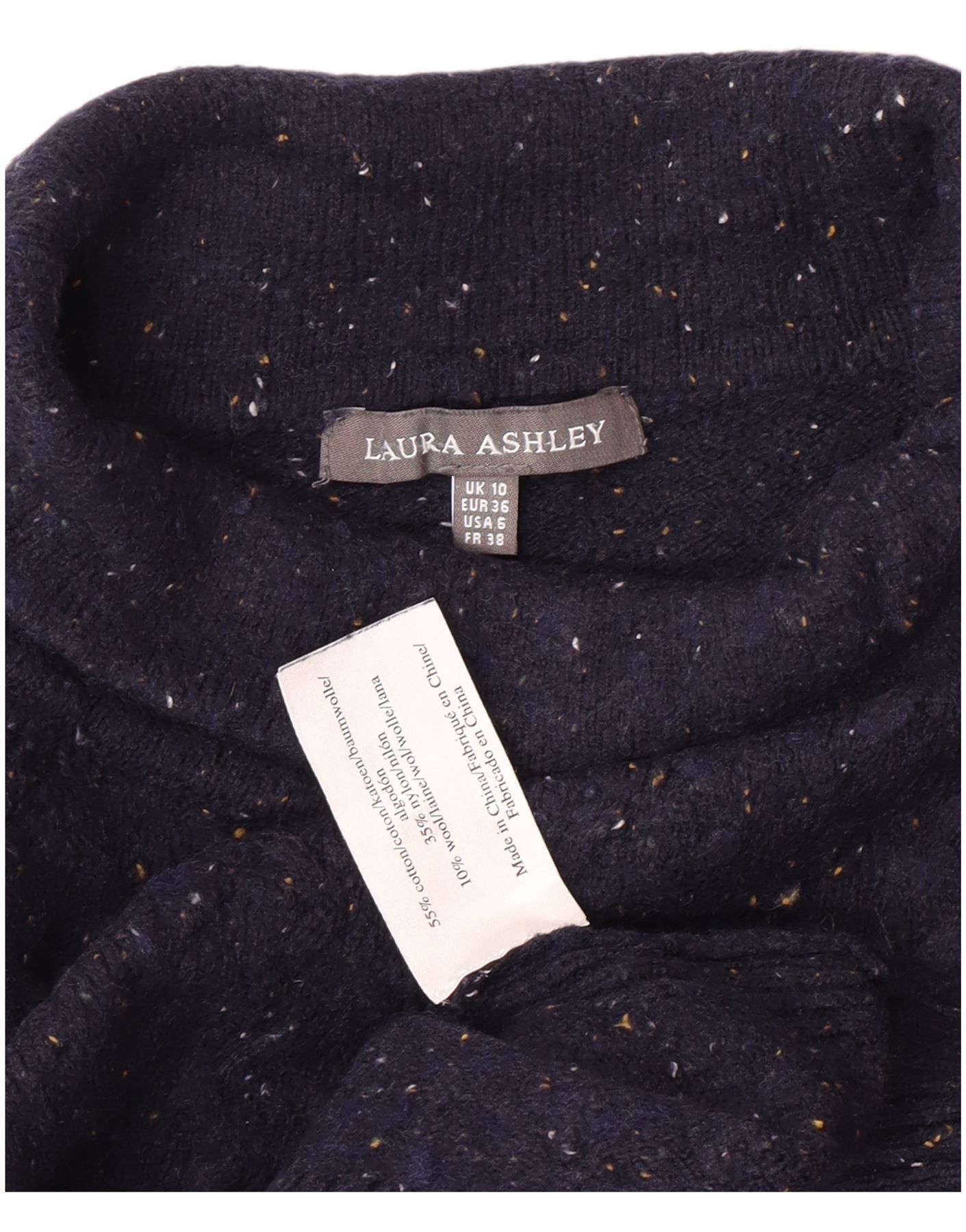 LAURA ASHLEY Pull col roulé pour femme UK 10 Petit Bleu marine moucheté