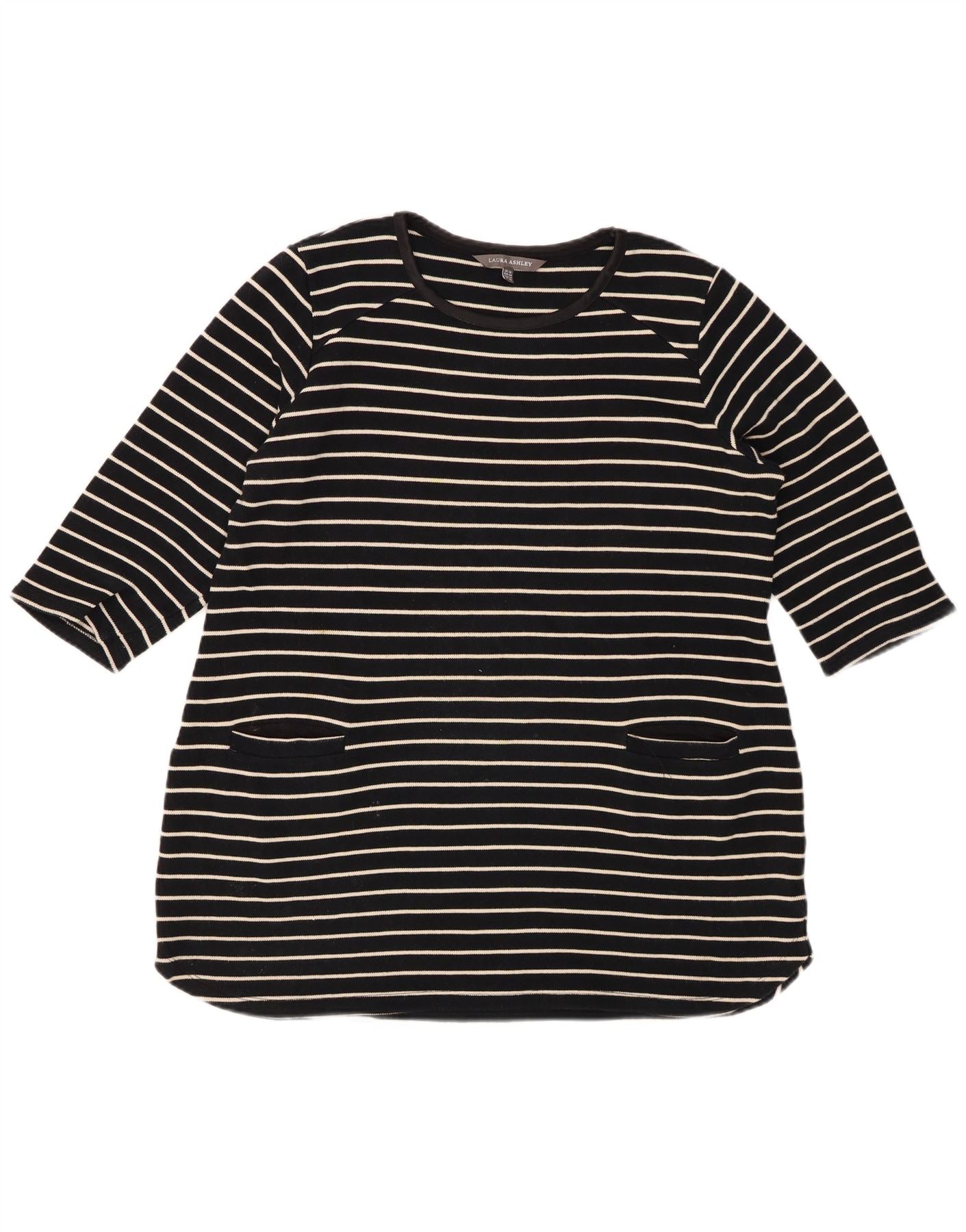 LAURA ASHLEY Haut Femme Manches 3/4 UK 18 XL Coton Rayé Noir
