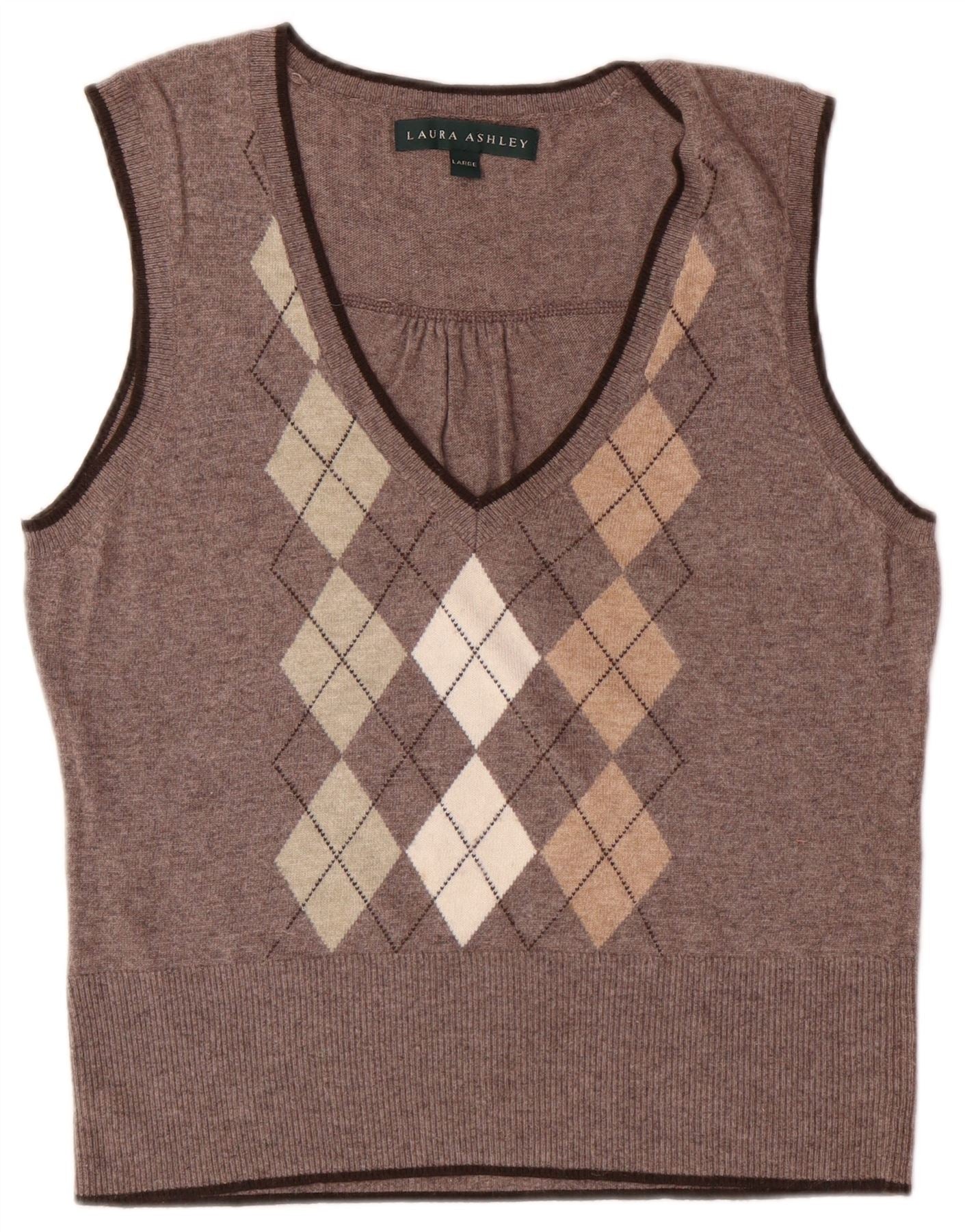 LAURA ASHLEY Débardeur pour femme UK 14 Large Marron Argyle/Diamond Viscose