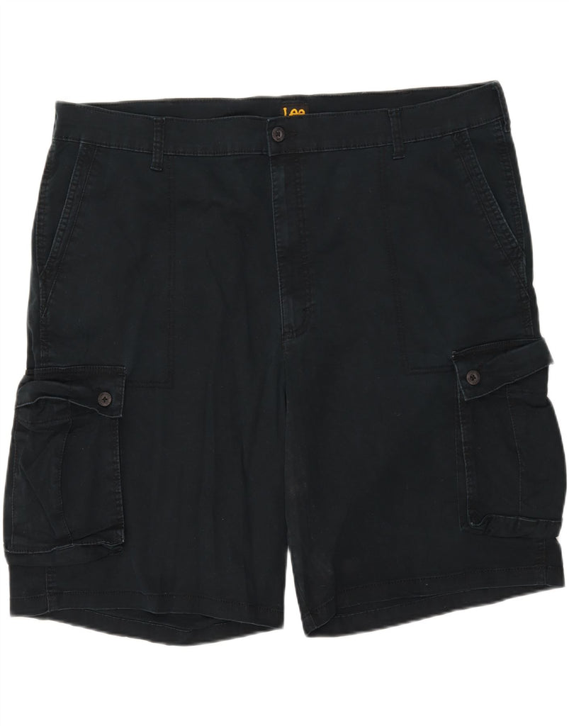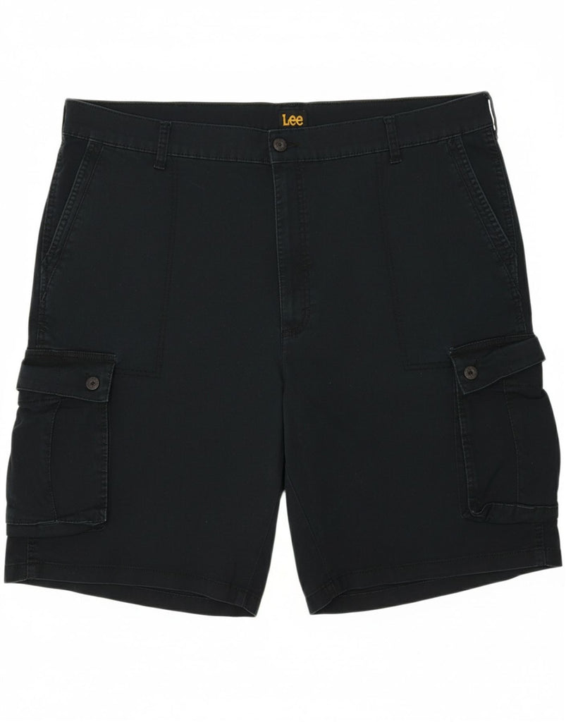 - AI Description: This Lee men's cargo shorts are crafted from a durable black blended fabric, offering both comfort and stretch. The classic design features a button closure and a relaxed fit, ensuring ease of movement. Multiple practical pockets enhance functionality and provide ample storage. The sturdy cotton blend material ensures lasting wear and a comfortable feel, perfect for everyday casual wear.