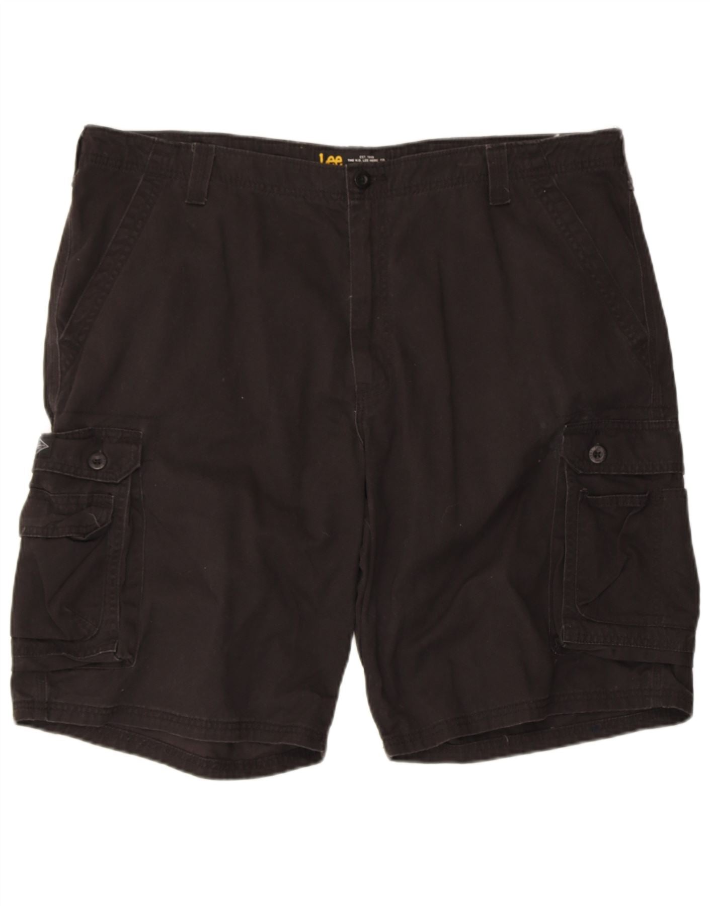 - AI Description: This Lee mens Cargo Shorts are crafted from 100 percent woven cotton for durable comfort. Presented in a versatile black hue, they feature a regular comfort fit, ensuring ease of movement. A button closure secures the waist. Practical pockets offer functional storage. The design is clean and straightforward, ideal for everyday wear.