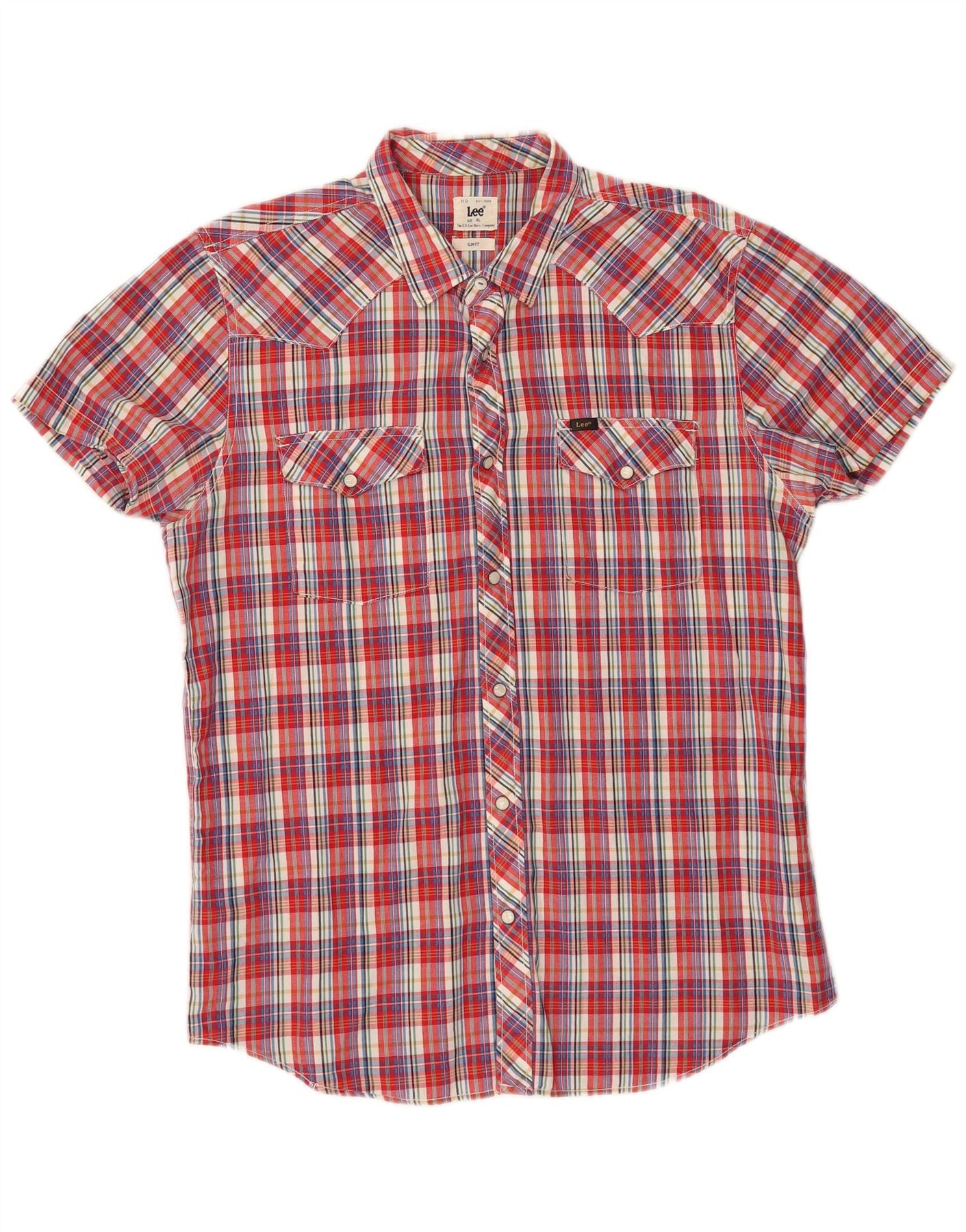 LEE Chemise Homme Coupe Slim à Manches Courtes XL Rouge à Carreaux Coton