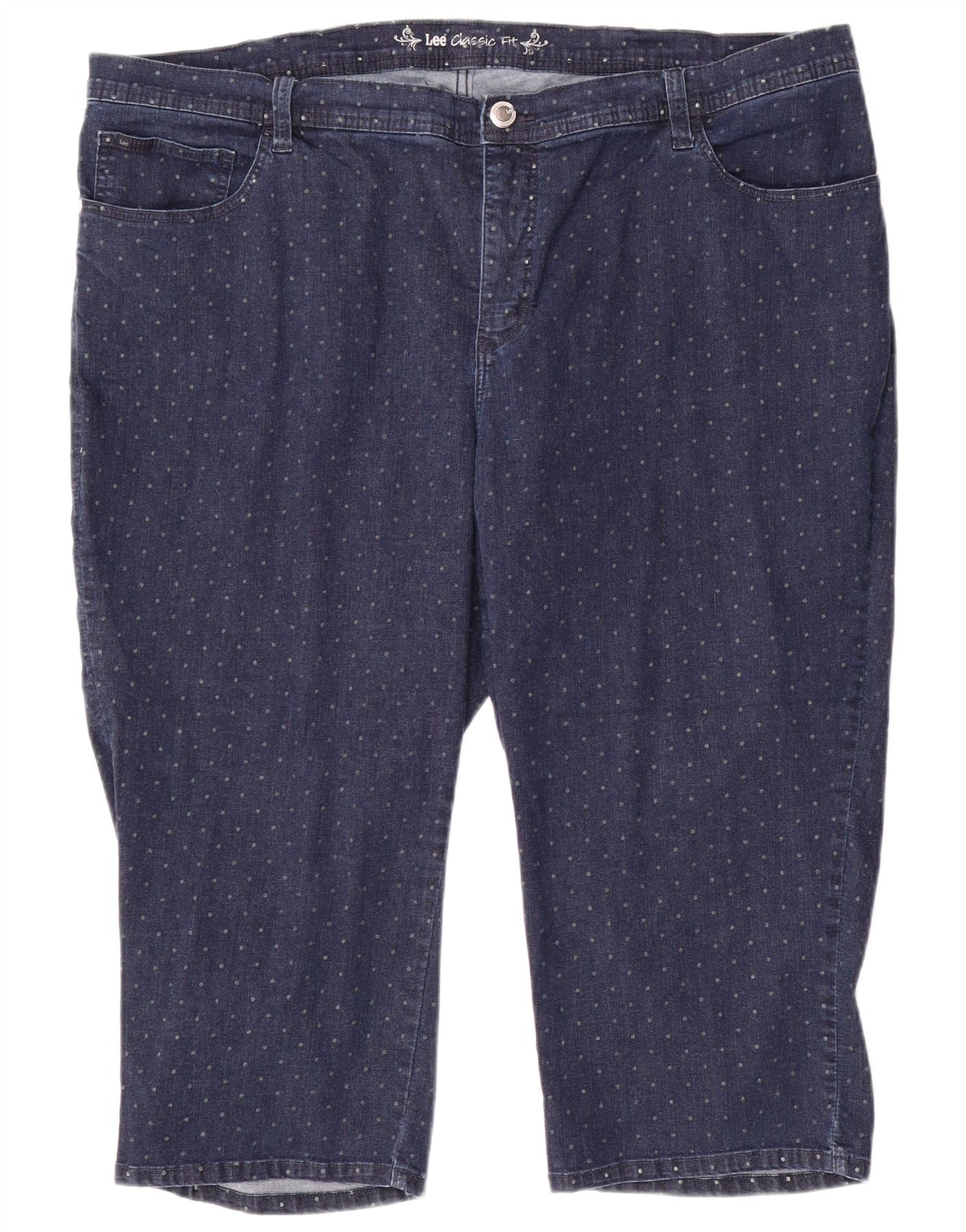 LEE Jean Capri coupe classique pour femme US 24 4XL W48 L20 Bleu à pois en coton