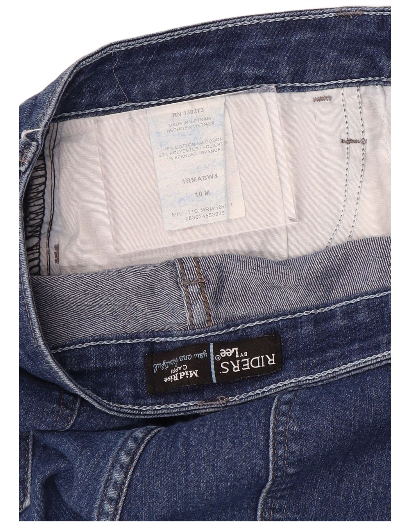 Lee Womens Riders Mid Rise Capri Jeans US 10 Large W32 L21 Bleu Coton