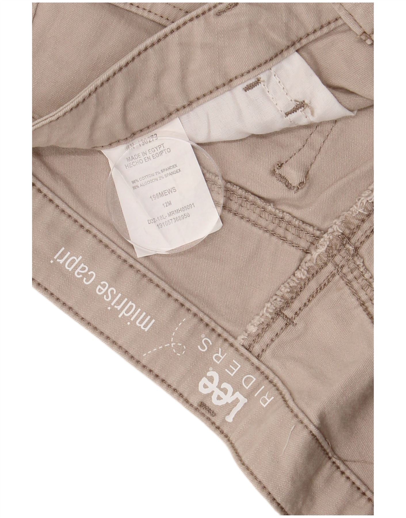 LEE Pantalon Capri Riders Taille Moyenne pour Femme US 12 Large W32 L20 Beige