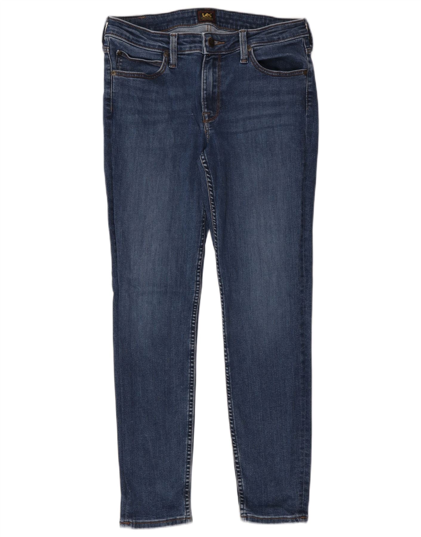 - Description de l'IA : Ce jean skinny Lee pour femme est confectionné en denim bleu classique. Il présente une taille mi-haute et une fermeture zippée sécurisée. La coupe skinny assure une silhouette élégante, se rétrécissant parfaitement au niveau de la jambe. Des poches traditionnelles sont incluses pour plus de praticité. Un subtil logo de la marque accentue le design, offrant un style polyvalent et classique à porter au quotidien.