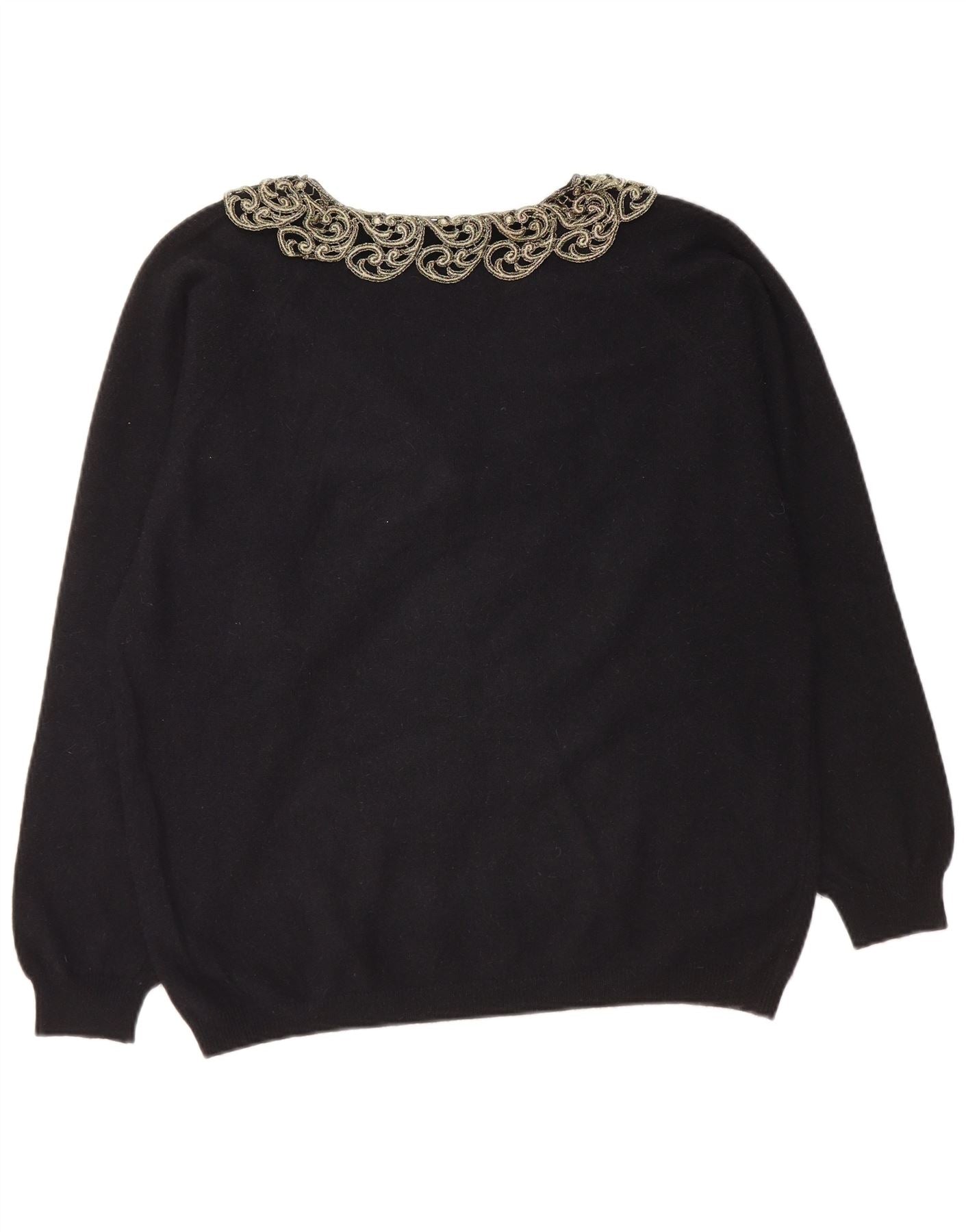LETIZIA L. Pull col en V pour femme UK 16 Large laine cachemire noire