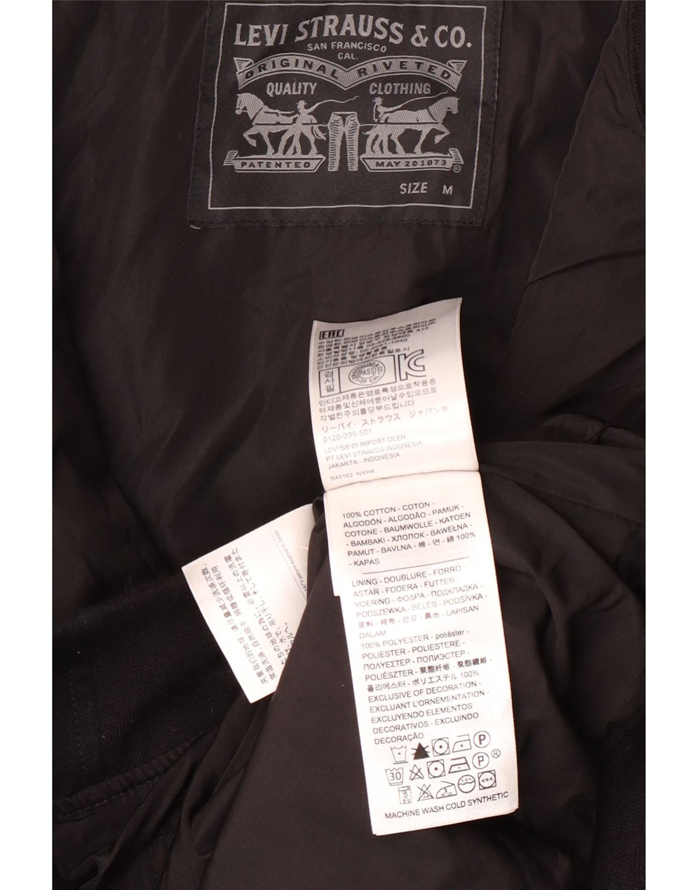 LEVI'S Veste Bomber Homme UK 38 Coton Noir Moyen