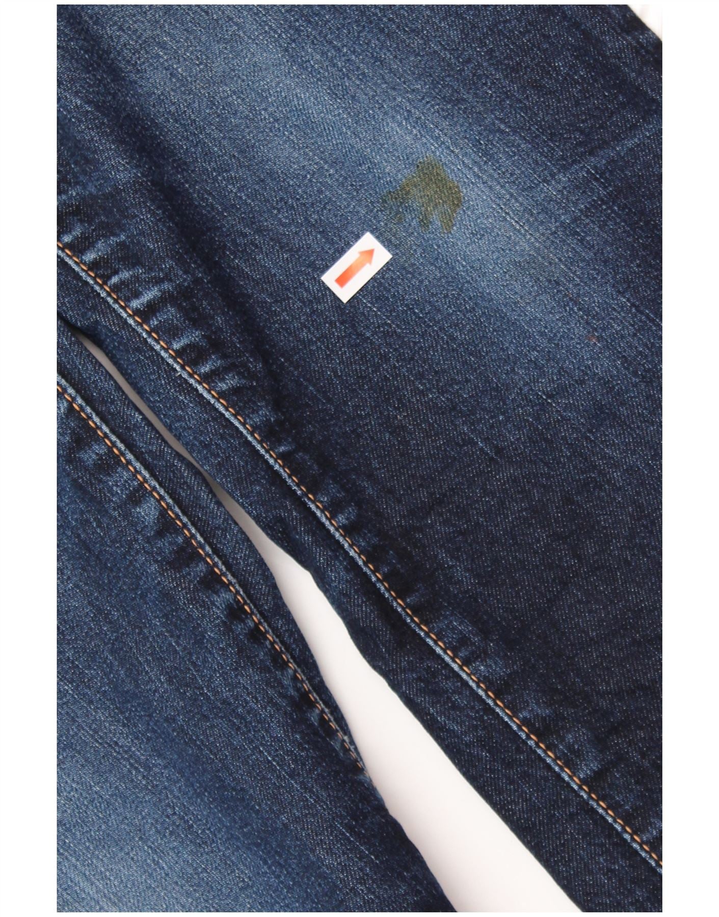 • État : État d'usage moyen : l'article a été fréquemment porté et peut présenter de nombreux défauts - Marque au dos. Marque au genou. Longueur retravaillée. Couleur décolorée au niveau des genoux.