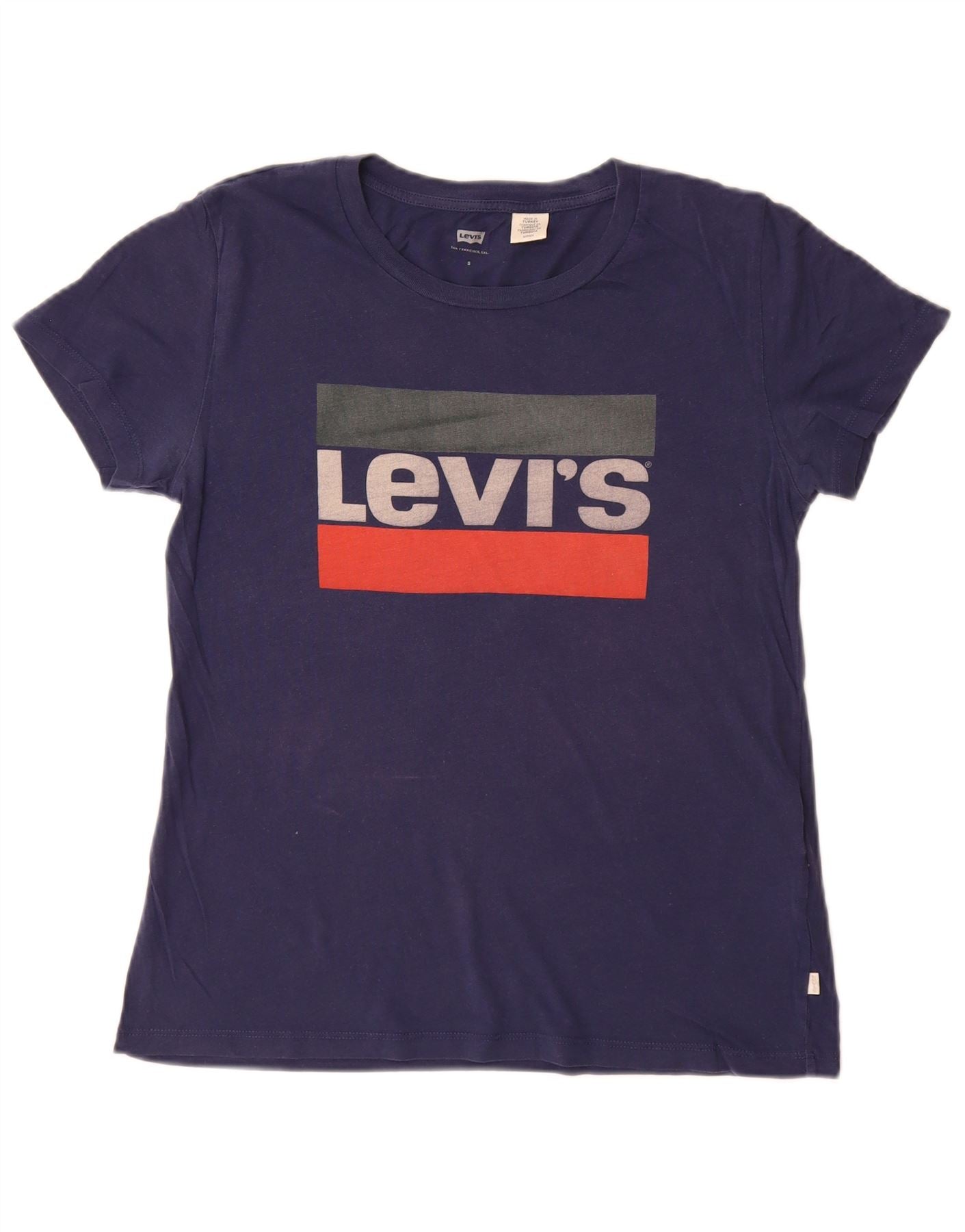 LEVI'S T-shirt graphique pour femme UK 10 Small Bleu marine Coton