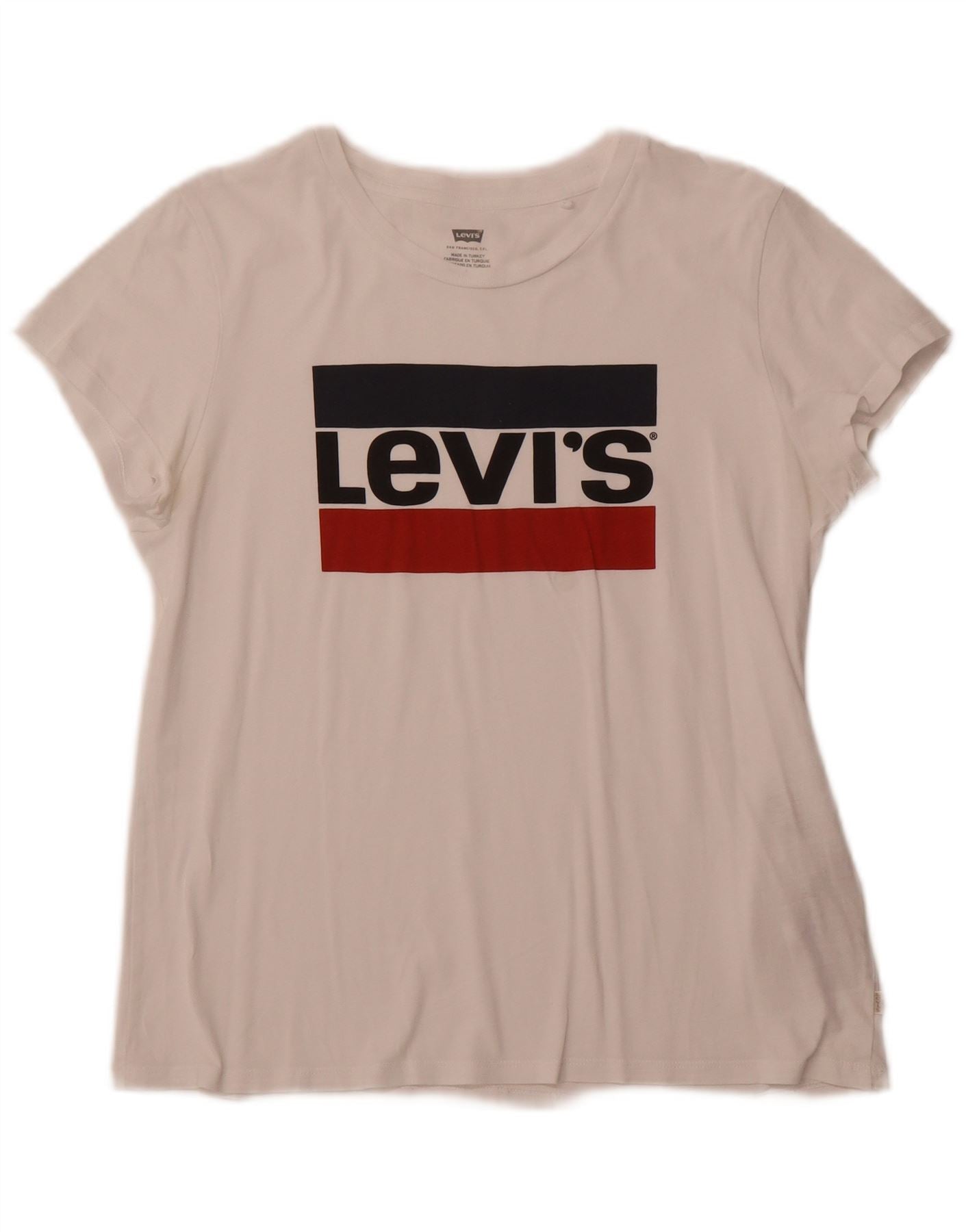 LEVI'S T-Shirt Graphique Femme UK 12 Coton Blanc Moyen