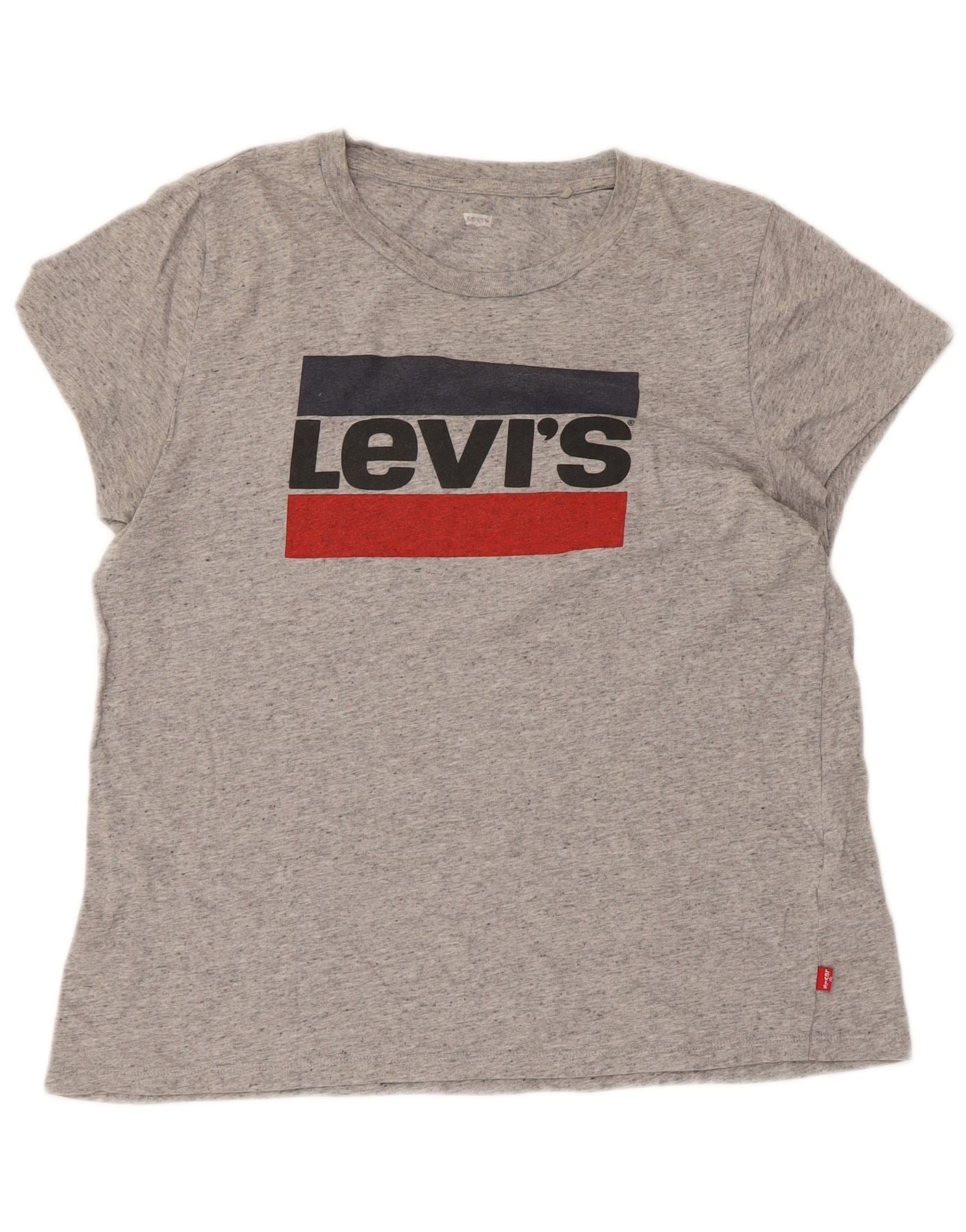LEVI'S T-Shirt Graphique Femme UK 14 Grand Coton Chiné Gris