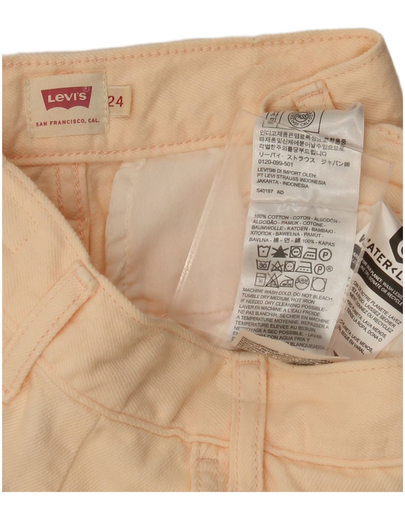 LEVI'S Pantalon Cargo Fuselé Taille Haute Femme W24 L28 Coton Rose