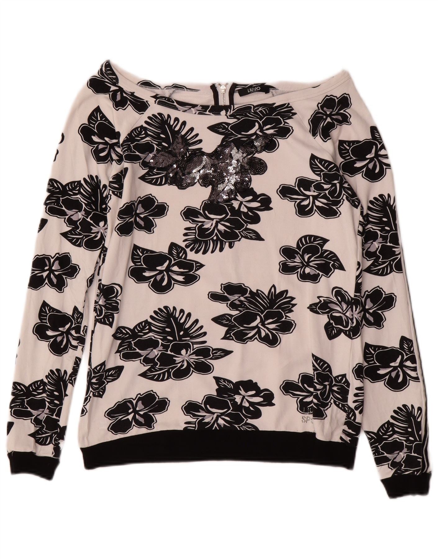 LIU JO Sweat-shirt pour femme UK 10 Small Blanc Floral Viscose