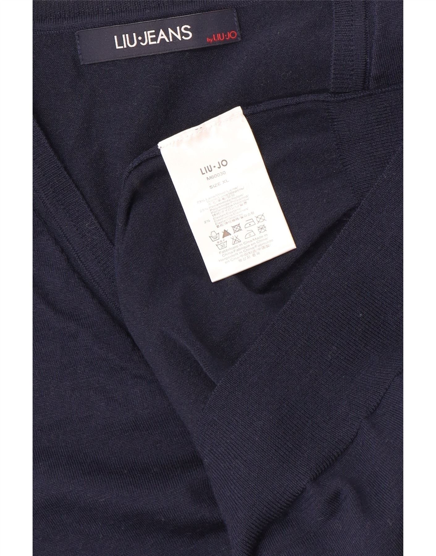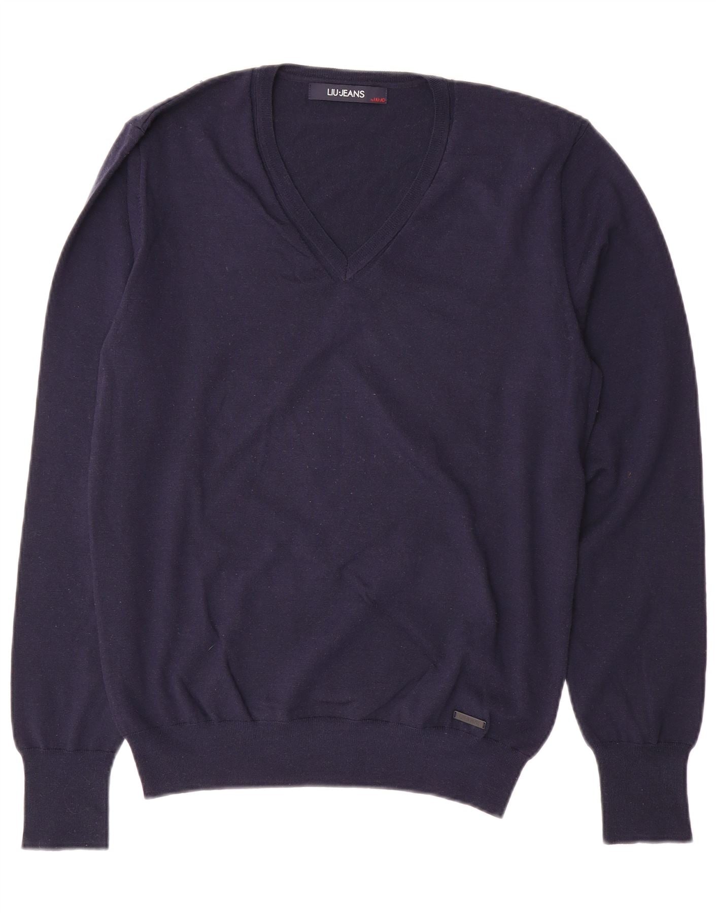 LIU JO Pull col V pour femme UK 18 XL Bleu marine Laine