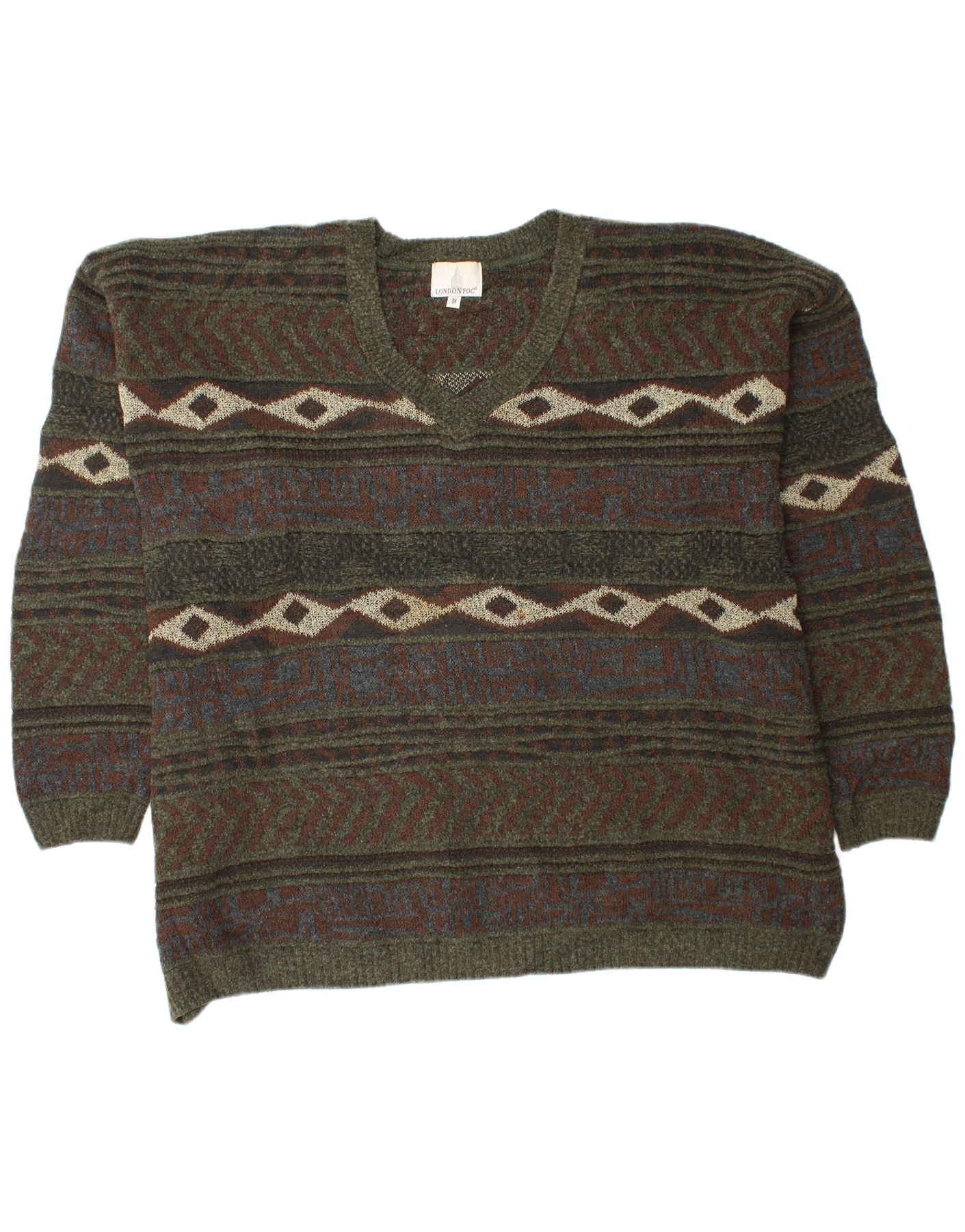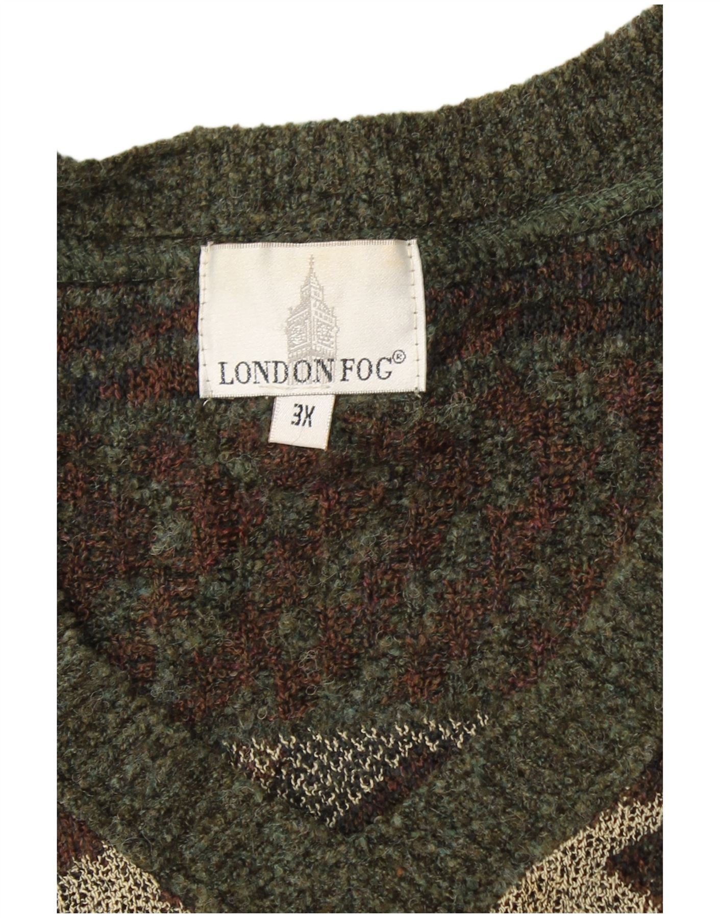 LONDON FOG Pull col V pour Homme 3XL Kaki Fair Isle