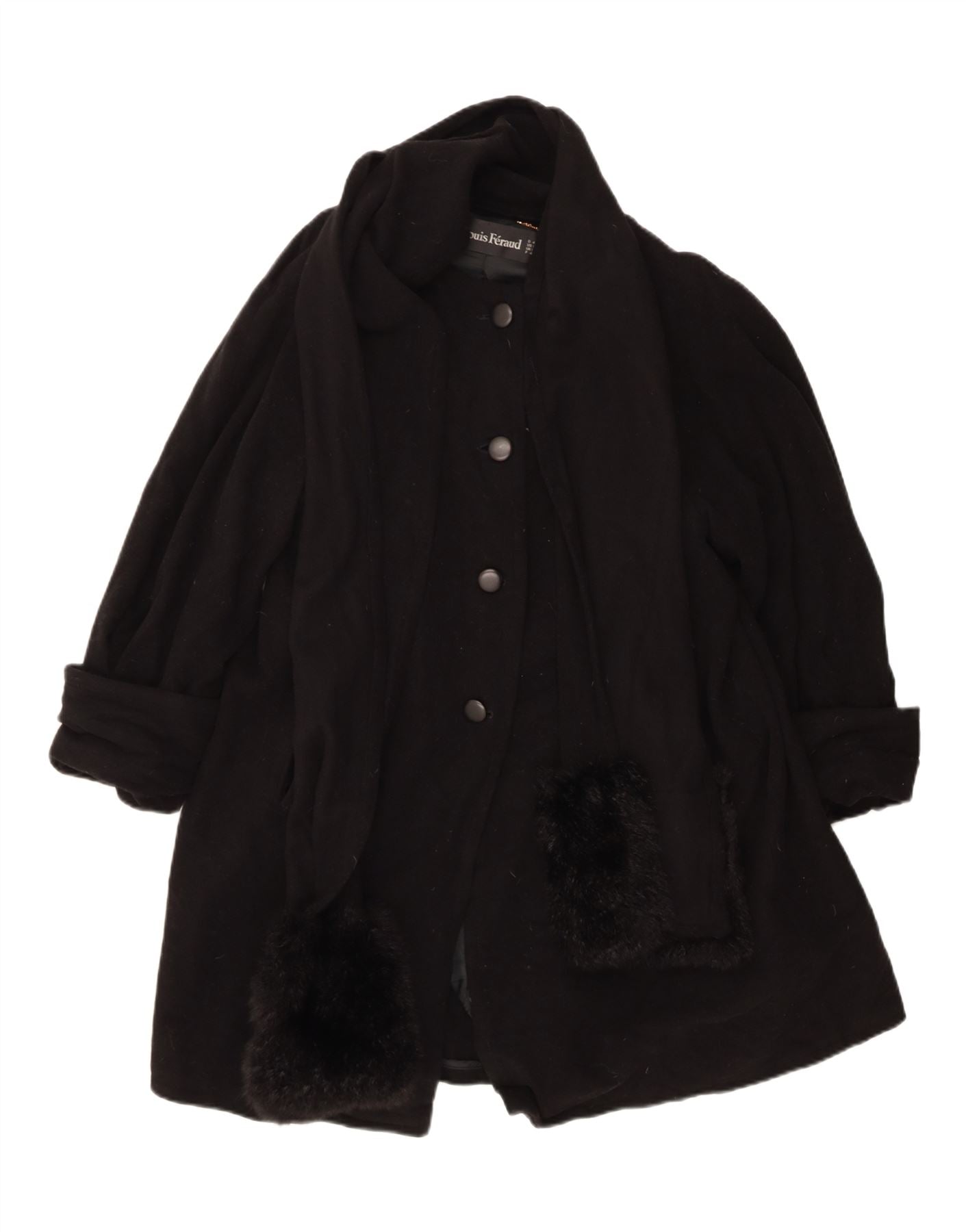 Louis Feraud Manteau Femme UK 14 Grand Noir Laine Vierge Classique
