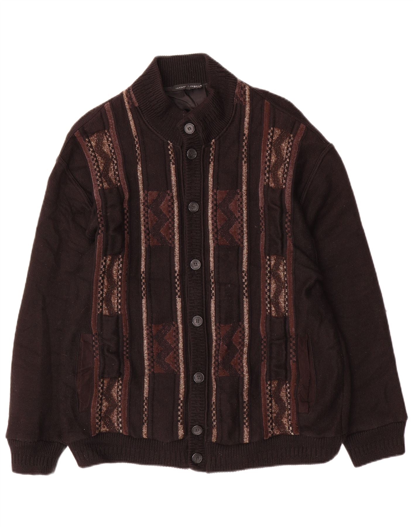 LUCIANO CHIARI Pull Cardigan Homme IT 52 Large Laine Géométrique Noir
