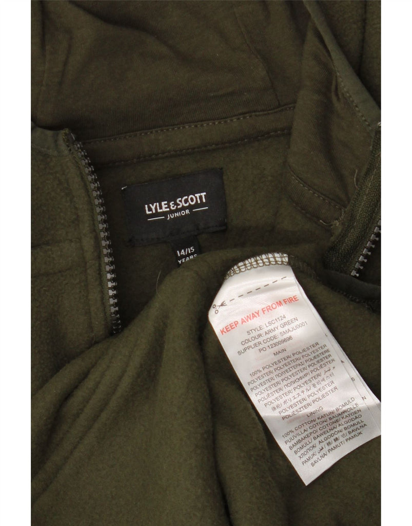 LYLE & SCOTT Boys Hooded Zip Neck Fleece Jumper 14-15 Years Khaki