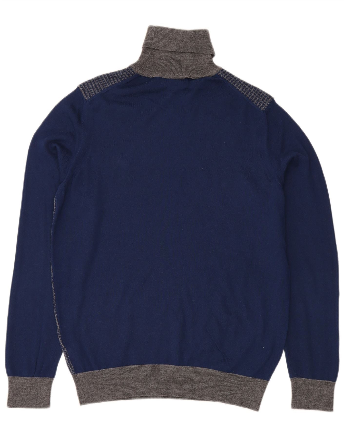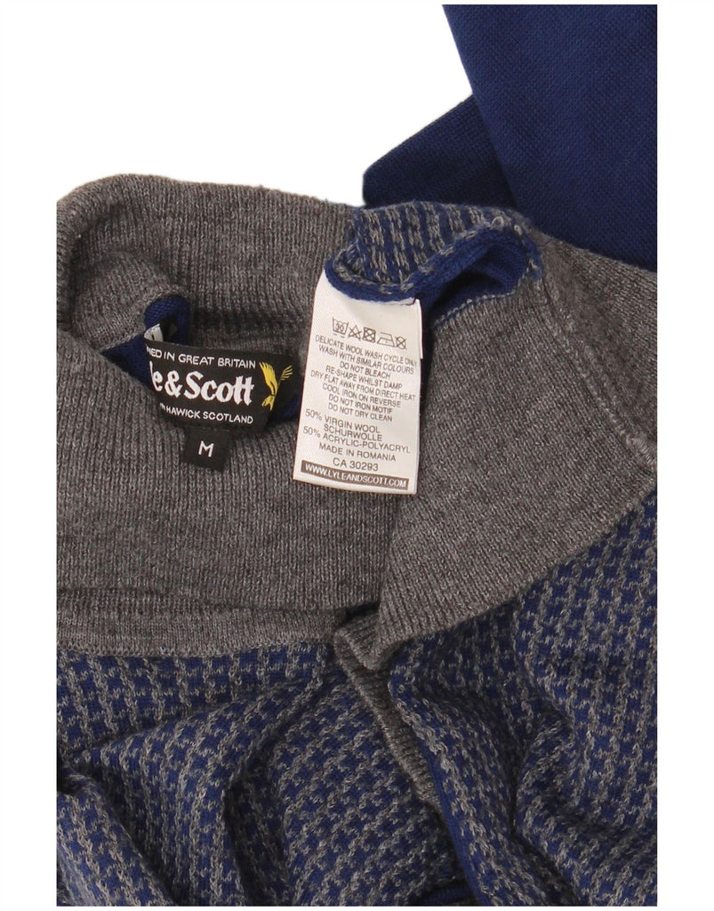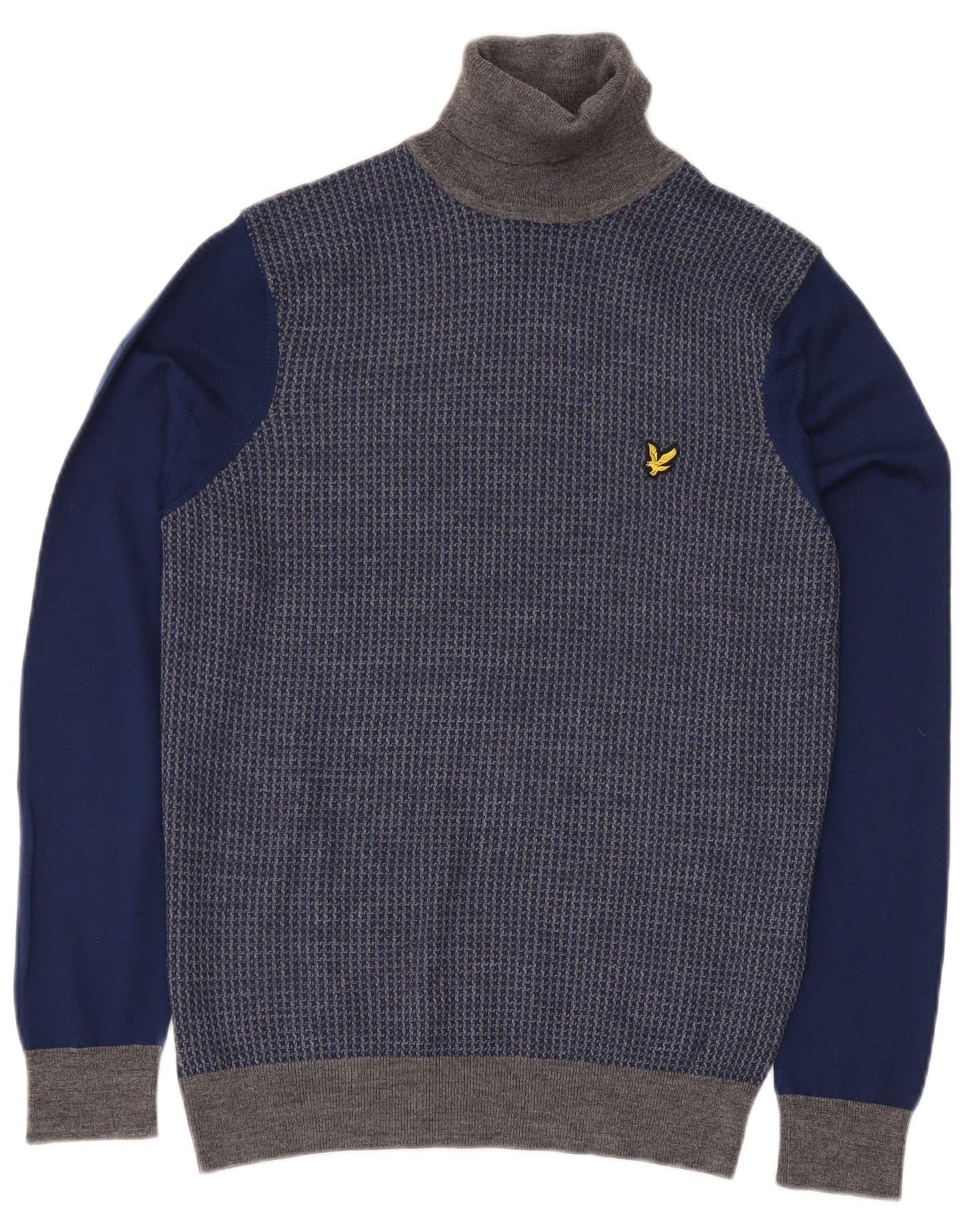 LYLE & SCOTT Pull Col Roulé Homme Bleu Moyen à Carreaux Laine Vierge