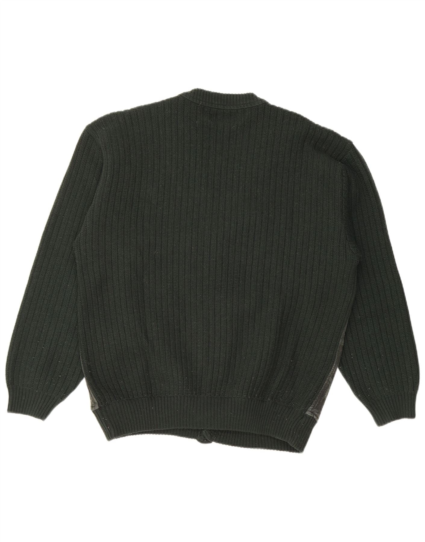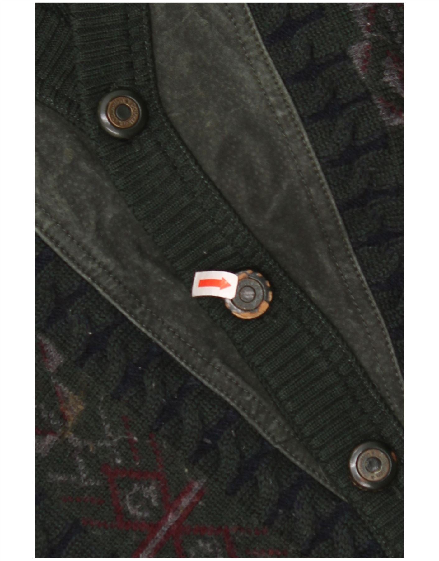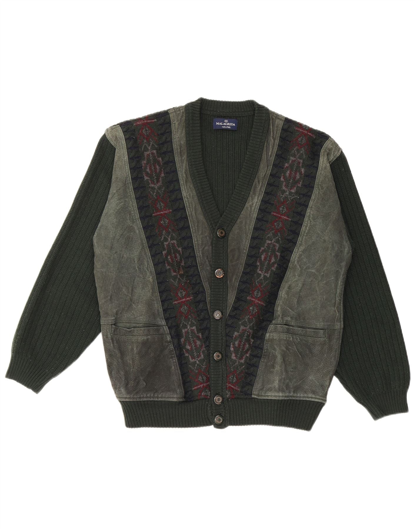 MALAGRIDA Pull Cardigan Homme Vert Moyen Géométrique Laine Vierge