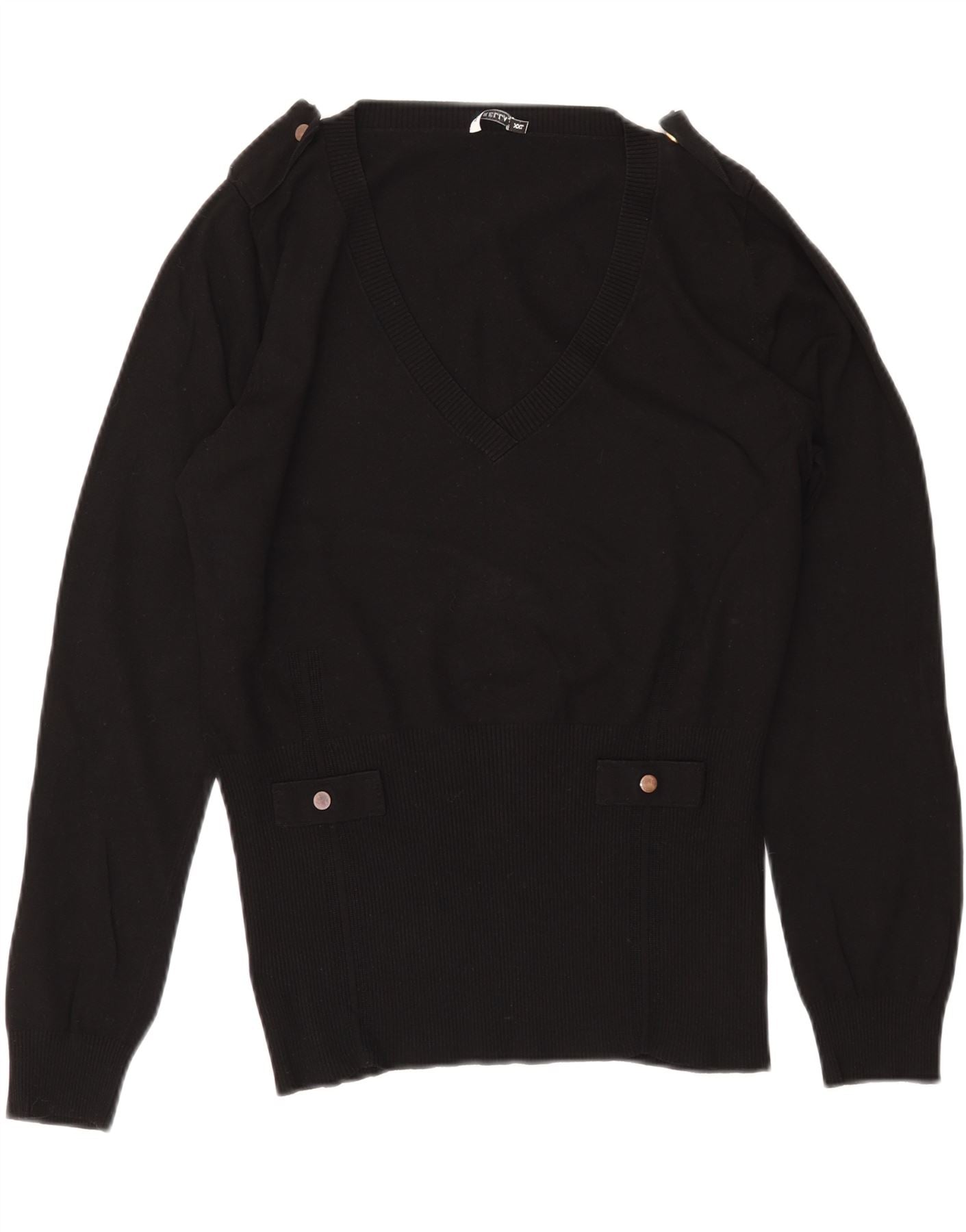 MARELLA Pull militaire col en V pour femme UK 20 2XL Noir Viscose