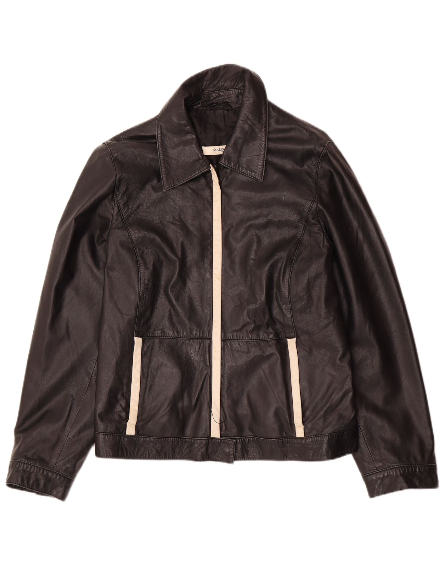 MARINA RINALDI Womens Jacket Size 19 Small Black Colourblock Leather