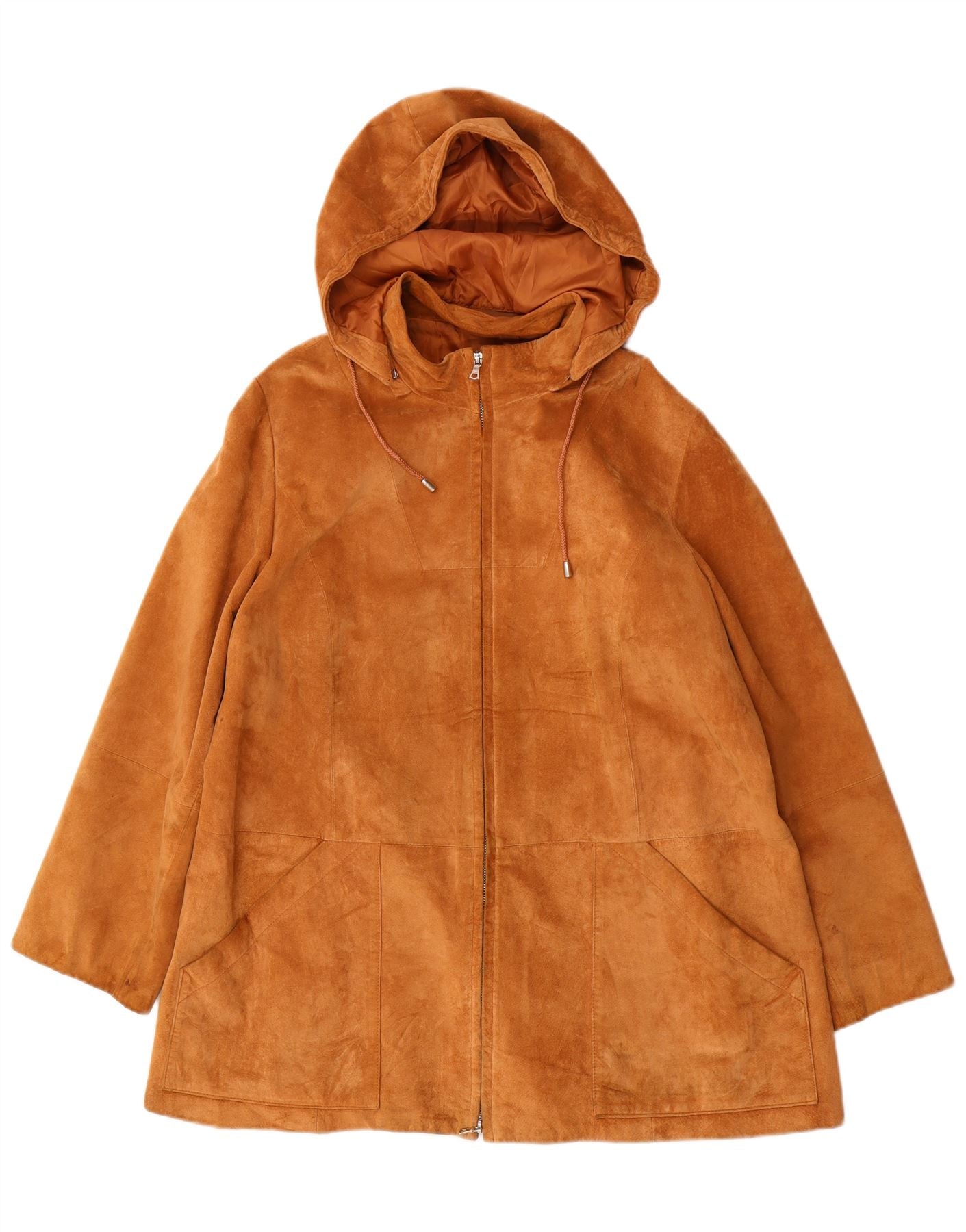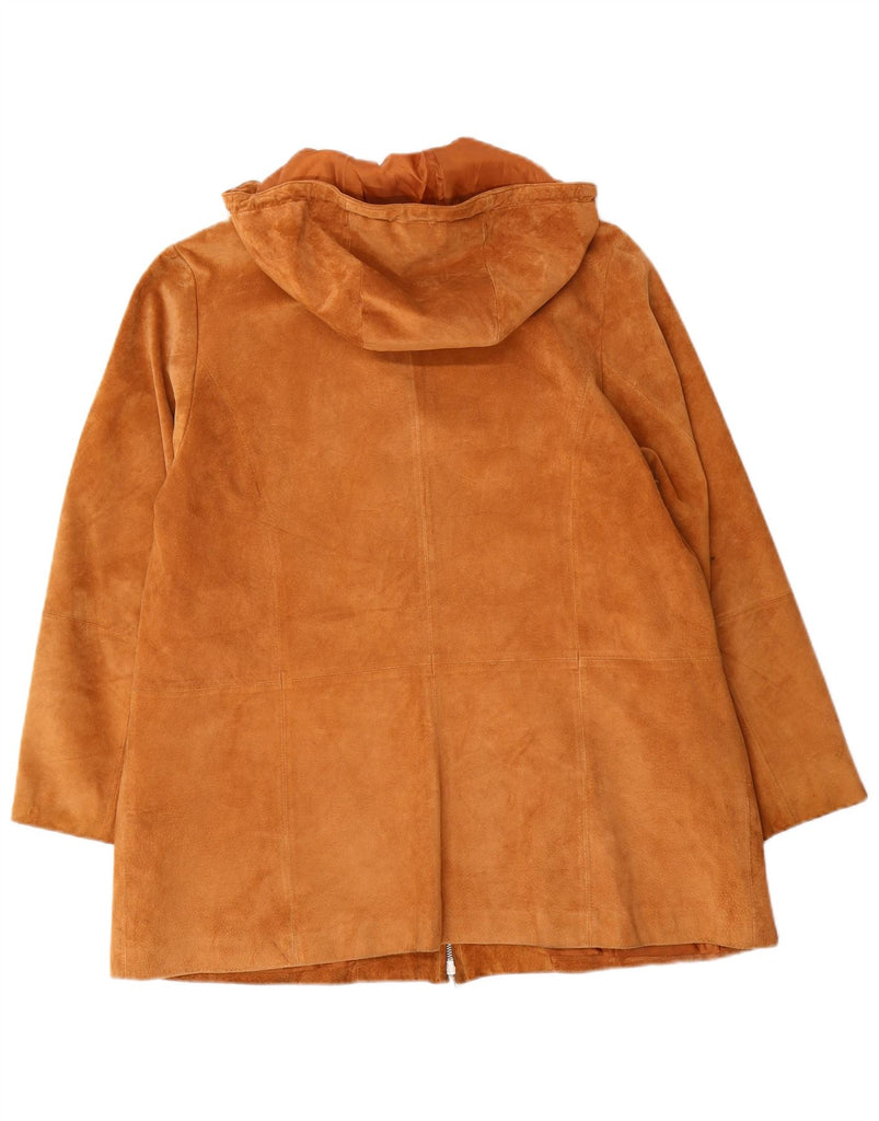MARINA RINALDI Veste en daim à capuche surdimensionnée pour femme Taille 25 Grand Marron