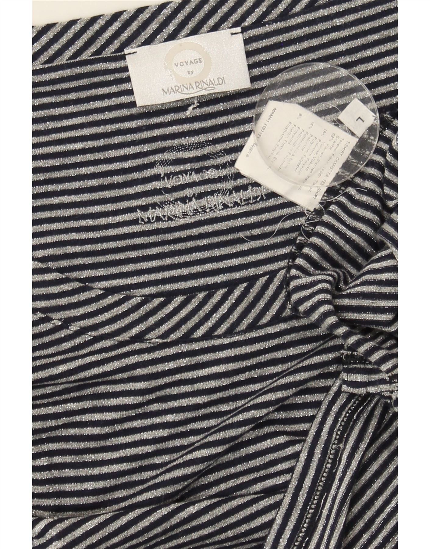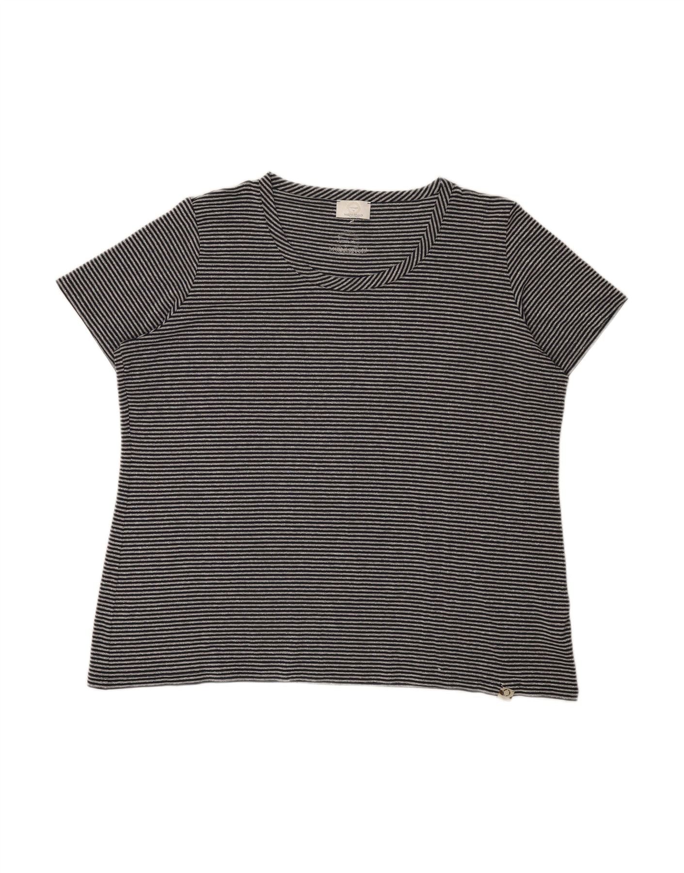 MARINA RINALDI Womens Voyage T-Shirt Top UK 16 Large Grey Pinstripe