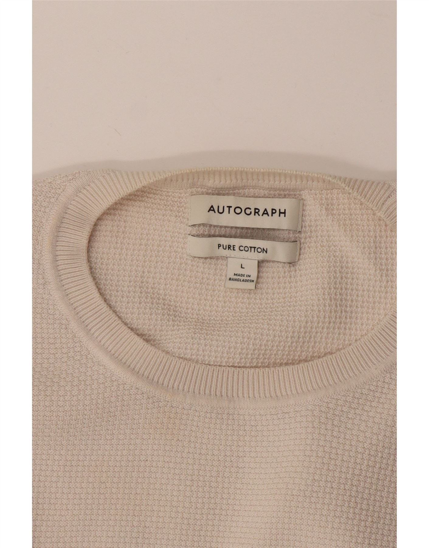 - Description de l'IA : Ce pull en pur coton pour hommes Autograph est confectionné à partir d'un tissu tricoté confortable dans une teinte blanc cassé polyvalente. Il présente un col rond classique et des manches longues, parfaits pour la superposition. La coupe régulière assure une silhouette décontractée, tandis que les manches et l'ourlet à revers offrent une finition soignée. Un subtil logo ajoute une touche raffinée. Ce style de pull offre un attrait intemporel et peut être porté au quotidien.