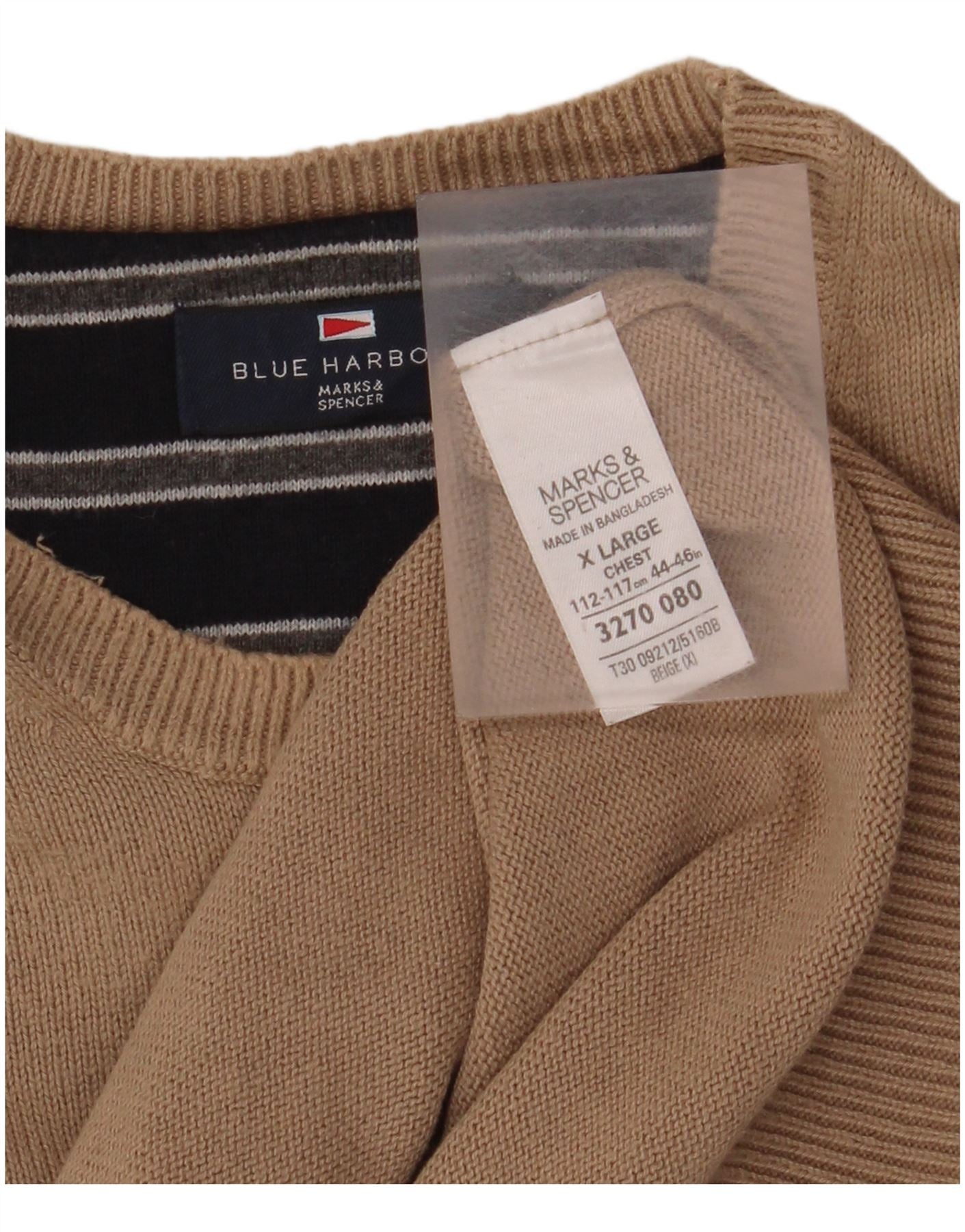 MARKS & SPENCER Pull Col Rond Bleu Harbour Homme XL Coton Beige