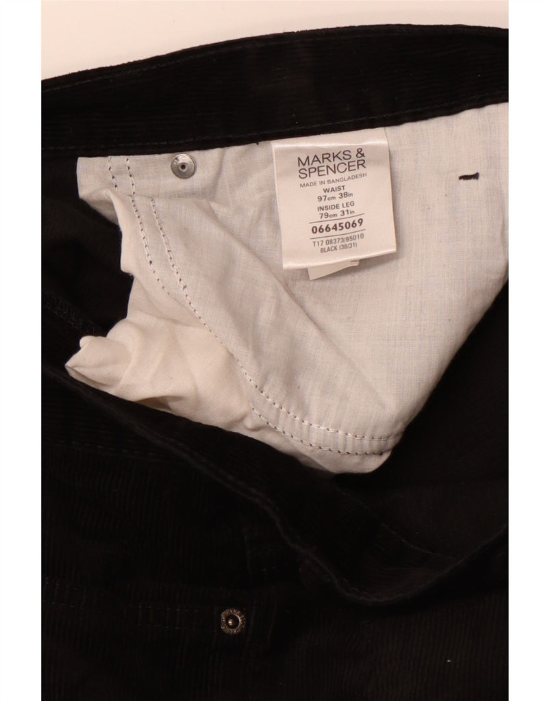 MARKS & SPENCER Pantalon droit en velours côtelé pour homme W38 L31 Noir Coton