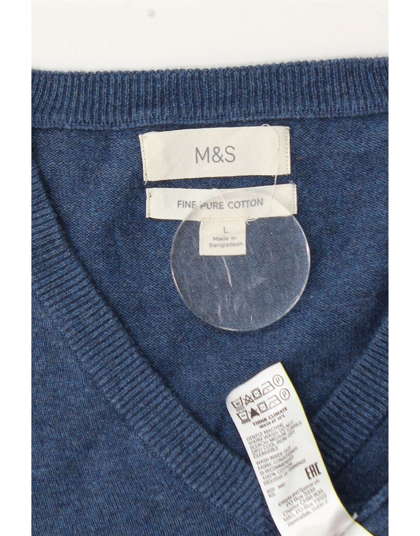 MARKS & SPENCER Pull col V pour homme en coton bleu Taille L