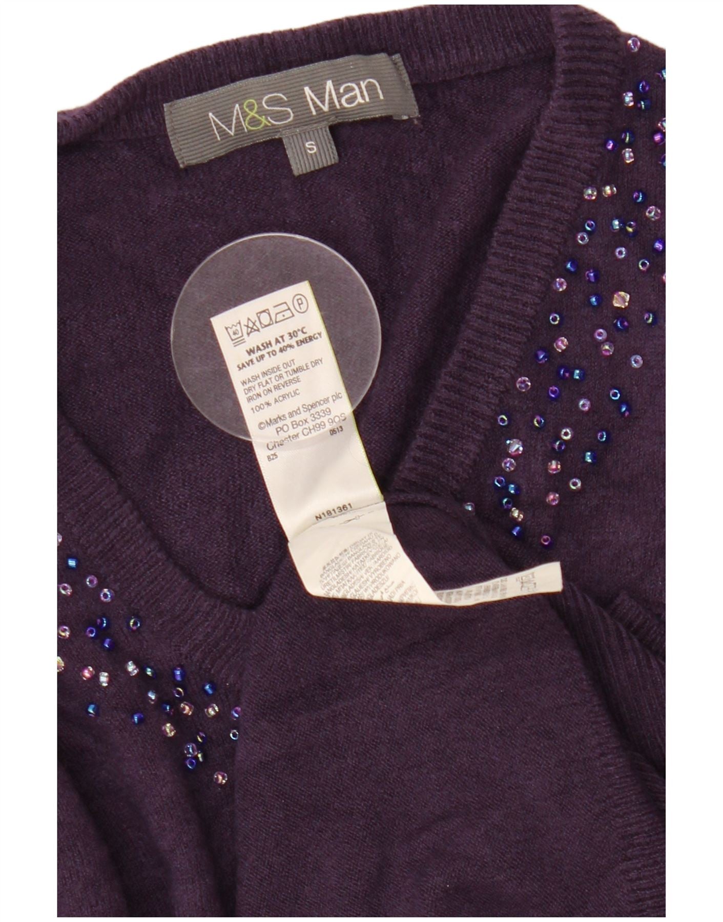 MARKS & SPENCER Pull col V pour homme Petit Violet Acrylique