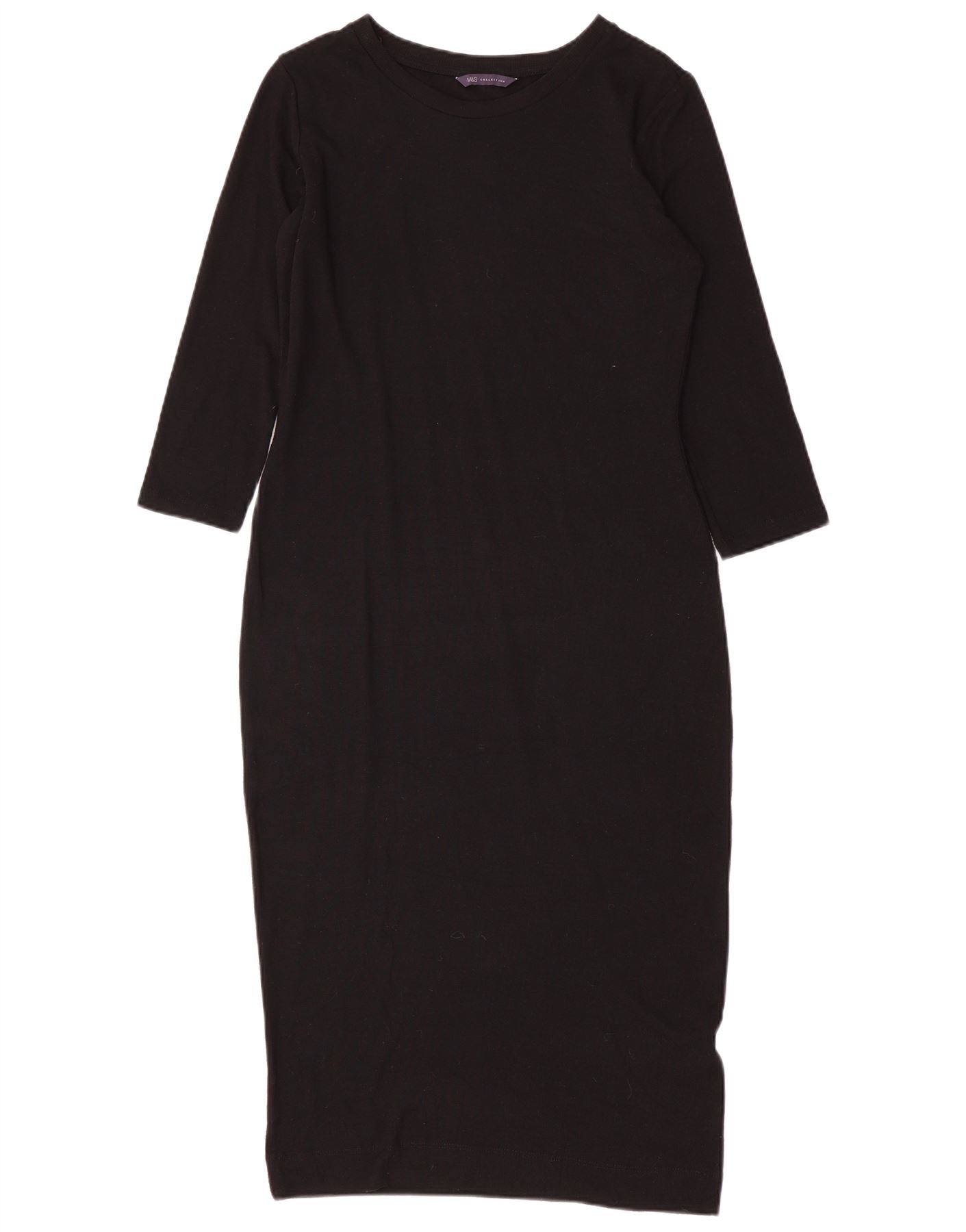MARKS & SPENCER Robe fourreau à manches 3/4 pour femme UK 10 Small Noir Polyester