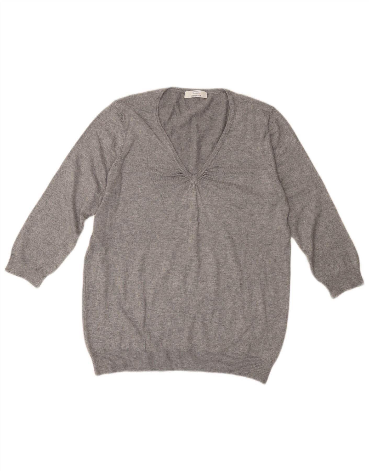 MARKS & SPENCER Pull à manches 3/4 et col en V pour femme UK 16 Large Gris