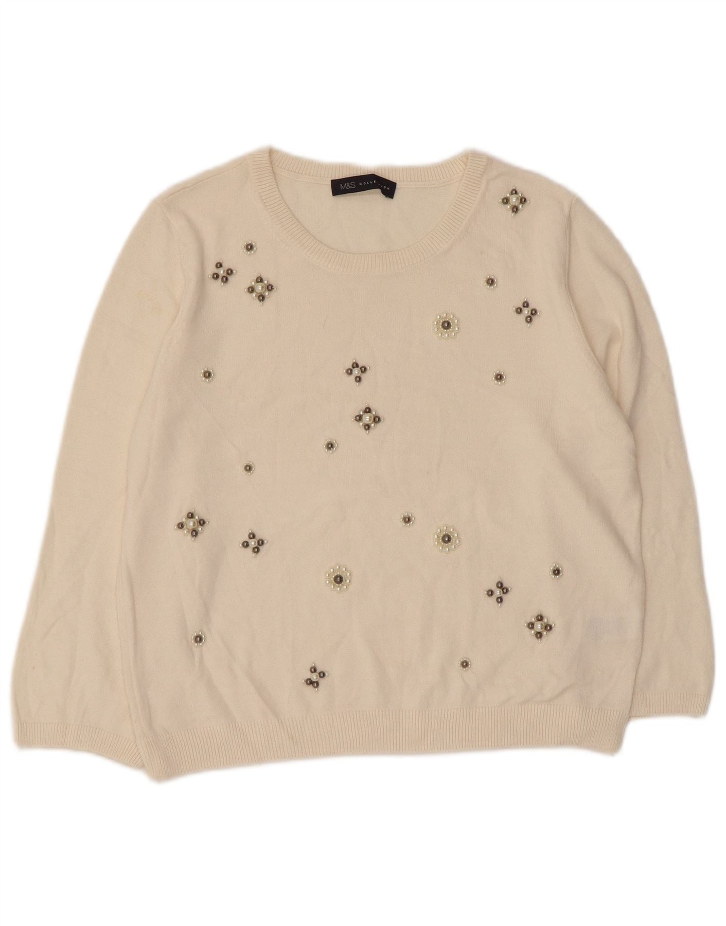 MARKS & SPENCER Pull col bateau pour femme UK 14 Large Blanc cassé