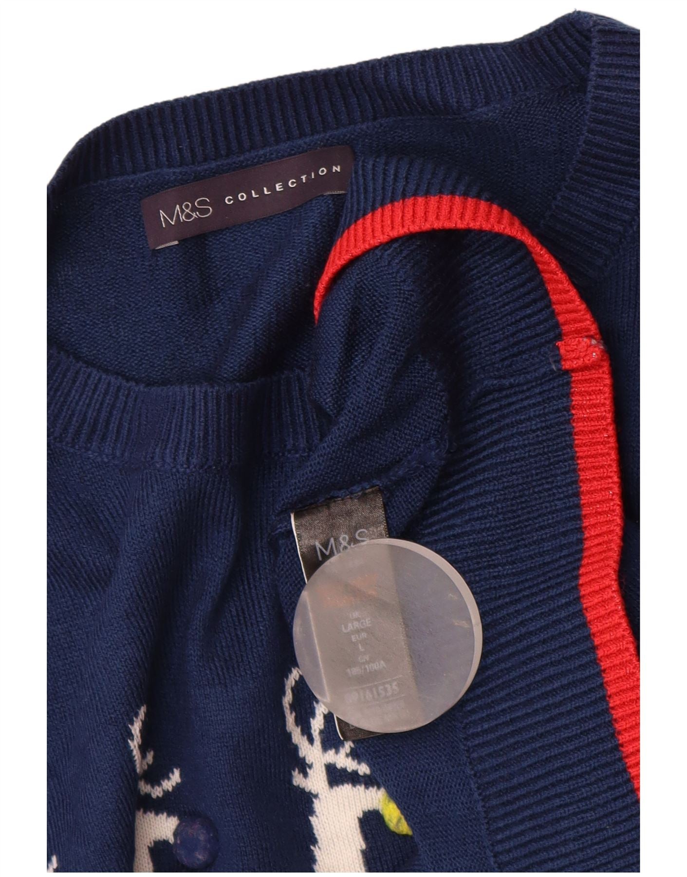 MARKS & SPENCER Pull col bateau pour femme UK 16 Large Bleu marine